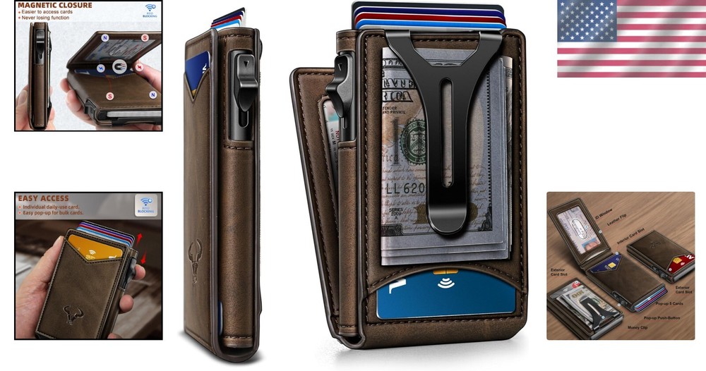 This wallet is a game-changer! The sleek magnetic flip design makes accessing cards effortless, while the 9 slots and money clip keep everything organized. The leather feels premium, and the pop-up mechanism is so smooth—perfect for daily use without the bulk. Love how it fits perfectly in my pocket while holding all my essentials. Highly recommend for anyone wanting style and practicality!