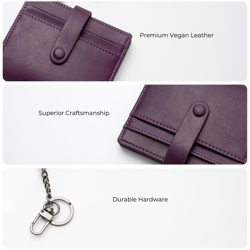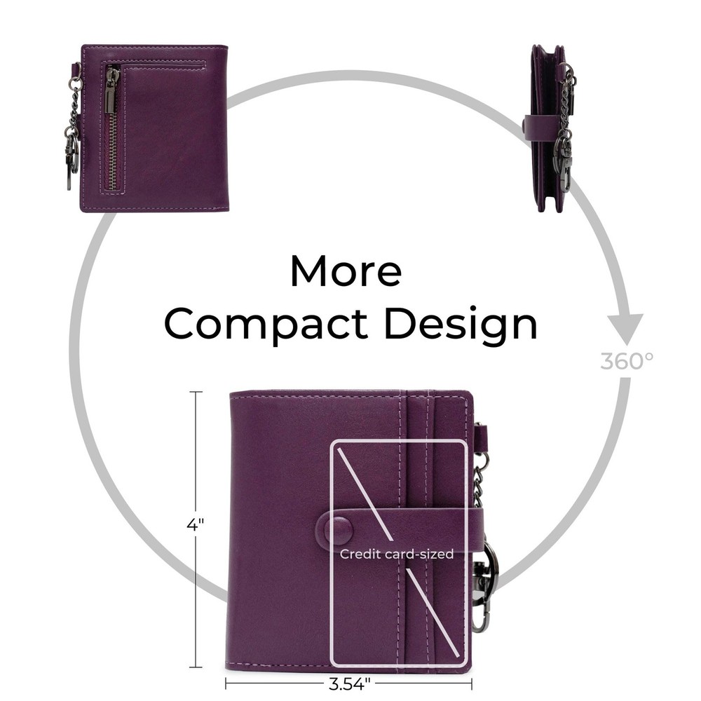 Embrace sleek functionality with the Slim Keychain Wallet, perfect for the modern woman seeking a stylish yet practical accessory. Made from premium vegan leather, this compact bifold is designed to secure and organize your essentials. Compact, Bifold Design with RFID Blocking Protect your personal information with advanced RFID blocking technology in this slim, bifold wallet. It's ideal for travel and everyday use, fitting seamlessly into pockets or purses. Practical Features for Maximum Organization This wallet features a zipper coin pocket, an ID window, and multiple card slots, ensuring that everything from credit cards to IDs is neatly organized and easily accessible. Designed for Style and Security The Keychain Wallet not only looks great but also provides peace of mind with its built-in security features. Its small size and keychain functionality make it an essential accessory for minimalists and travelers alike. Gift-Ready Packaging Presented in an attractive gift box, making it a perfect choice for special occasions like birthdays, anniversaries, or as a thoughtful travel gift. Sleek and Compact Design: Ultra-thin bifold wallet, crafted from premium vegan leather, offers a minimalist yet stylish solution for everyday carry. Fits perfectly in your pocket or purse, ideal for travel and daily use. Versatile Storage: Features a zipper coin pocket, ID window, and 8 card slots to keep your essentials organized and accessible. Includes a durable keychain for added convenience. RFID Blocking Technology: Protect your personal information with advanced RFID blocking technology, ensuring safety and security for your credit cards and IDs. Sustainable and Durable: Made with high-quality, water-resistant vegan leather that withstands wear and tear, making it a long-lasting companion for your adventures. Elegant Gift Box Packaging: Comes in a beautifully designed gift box, perfect for special occasions like birthdays, anniversaries, or as a thoughtful gift for travelers and professionals.