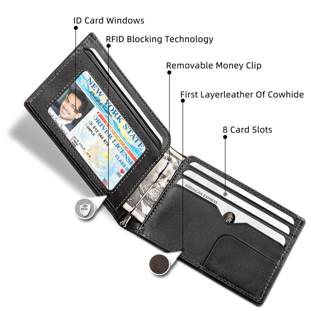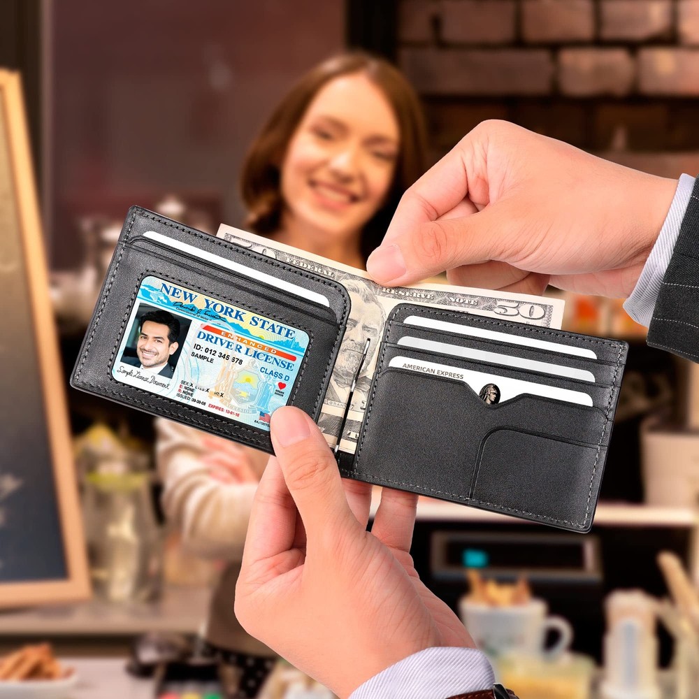 1. This wallet is a game-changer! The genuine leather feels premium and ages beautifully, while the slim design keeps my pockets clutter-free. Love the RFID blocking—peace of mind against digital theft. The money clip is sturdy, and it holds just the essentials without bulk. Perfect for everyday use or dressing up. Highly recommend for anyone who wants style, security, and functionality in one sleek package!