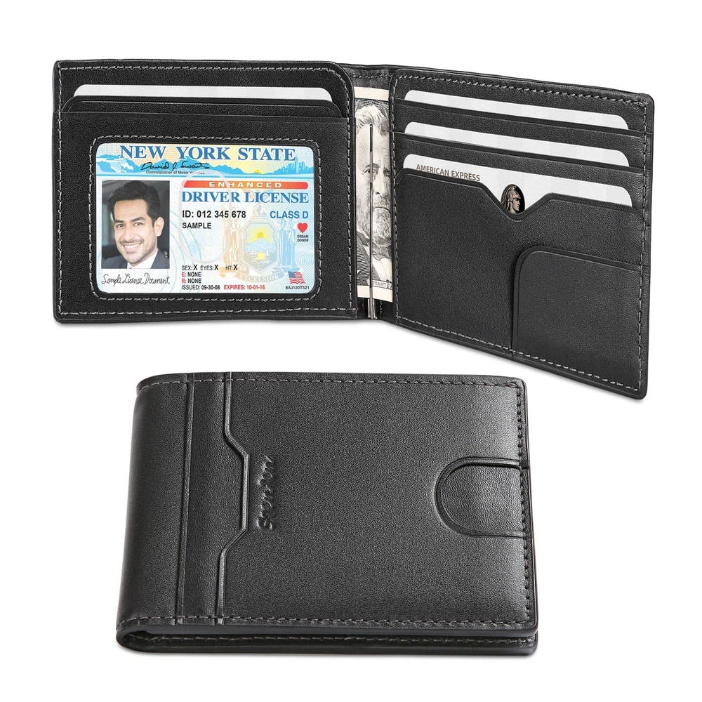 Slim RFID Blocking Leather Wallet for Men with Money Clip - Minimalist Design