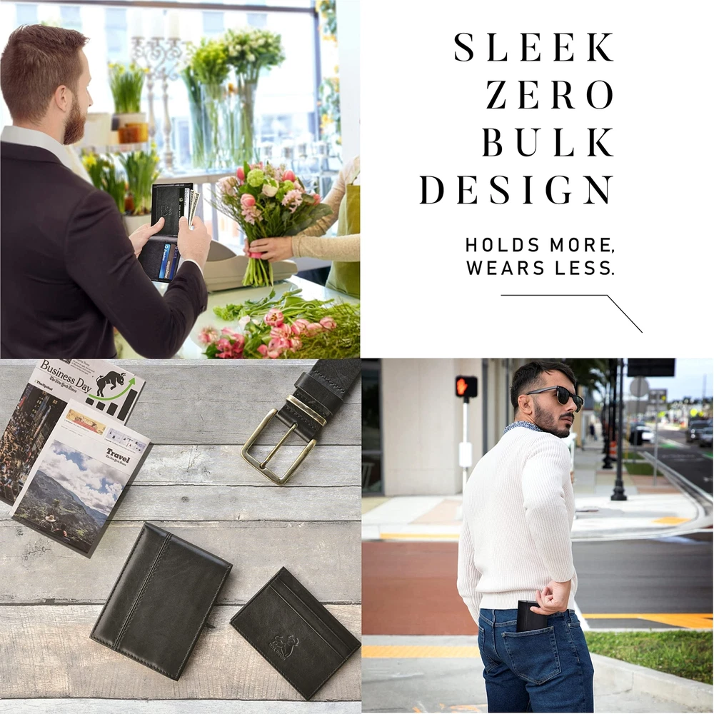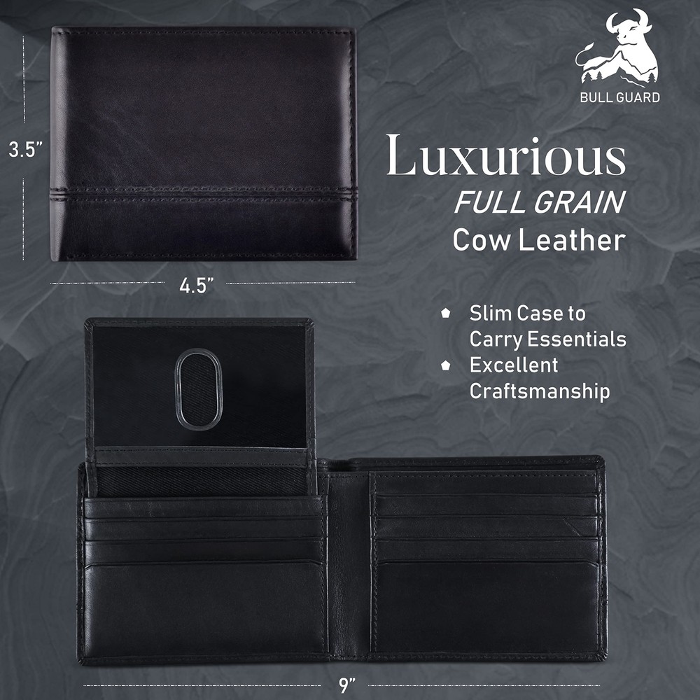1. This wallet is pure class—soft, full-grain leather with a timeless vintage look that only gets better with age. The RFID-blocking insert keeps your cards safe from skimmers, and the slim design fits perfectly in your pocket without bulking it up. Perfect for the modern gentleman who values both style and security. A must-have for everyday carry or travel!