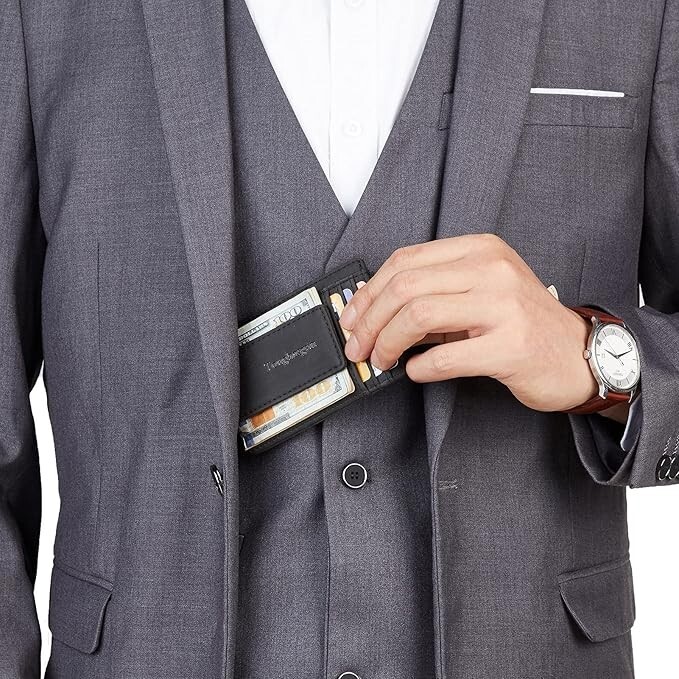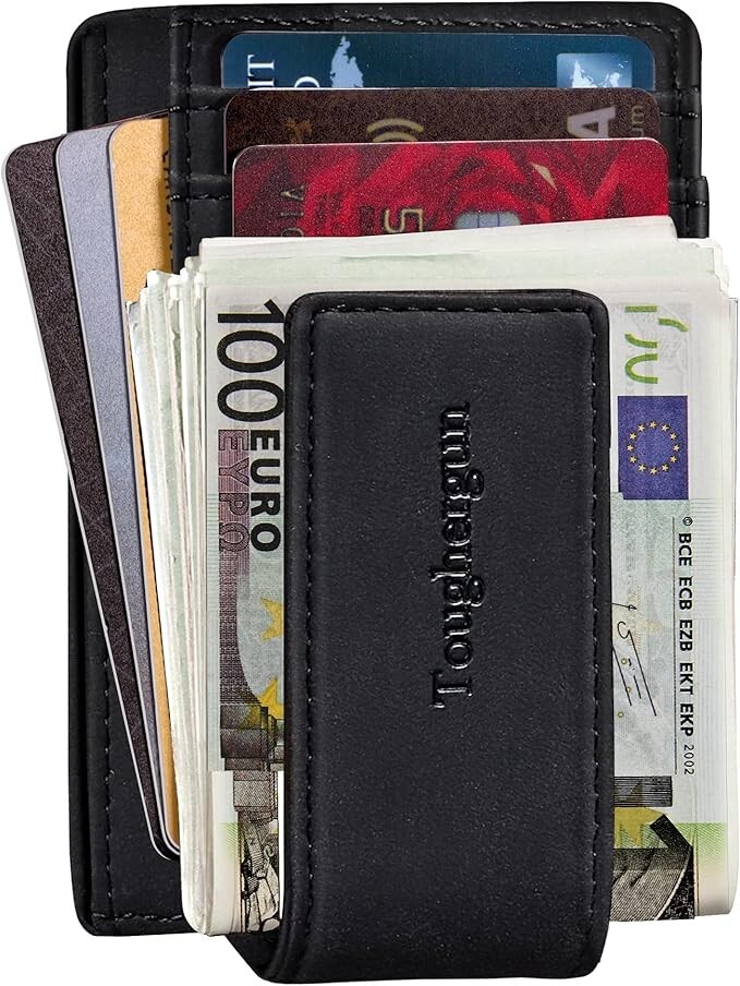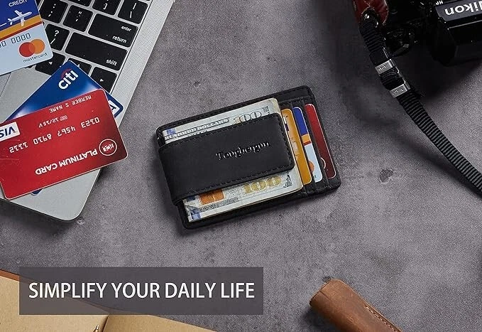 About this item 🍀 Magnetic Closure 🍀 You Work Hard for Your Money: That’s why we use 4 Rare Earth Magnets (instead of 2) to hold on to your cash; We tested the rest and now you can buy the best; Rare-Earth magnets were developed in the ’70s and are made from alloys of rare earth elements; They are the strongest type of permanent magnets 🍀 We Made This One Ourselves: After testing the competition we knew we had to develop our Money Clip; Finding the right factory wasn’t easy but once the prototype was completed we knew we had a winner using Full Grain Napa Cow Leather, detailed stitching, and secure card slot holders 🍀 Size and Features: The wallet is 4”x 3” and fits nicely in your front pocket; Comes with 3 card slots, 2 larger slots, and an I.D. holder 🍀 RFID Blocking Wallet: Tested for 13.56 MHz Frequency in which the credit cards operate.125 kHz Proximity Cards, RFID signals are NOT blocked