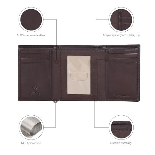 BULLCAPTAIN Genuine Leather Mens Wallet RFID Bifold Large Capacity Card Holder