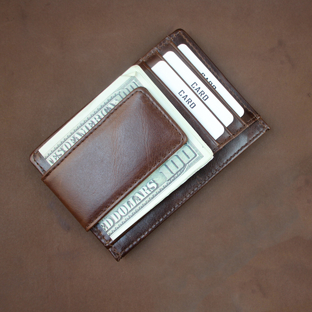 Just got this sleek leather card holder and wow, it's a game-changer! The magnetic clip is surprisingly strong, keeping everything secure without the bulk. Fits perfectly in my pocket and looks way more expensive than it is. Absolutely love it!