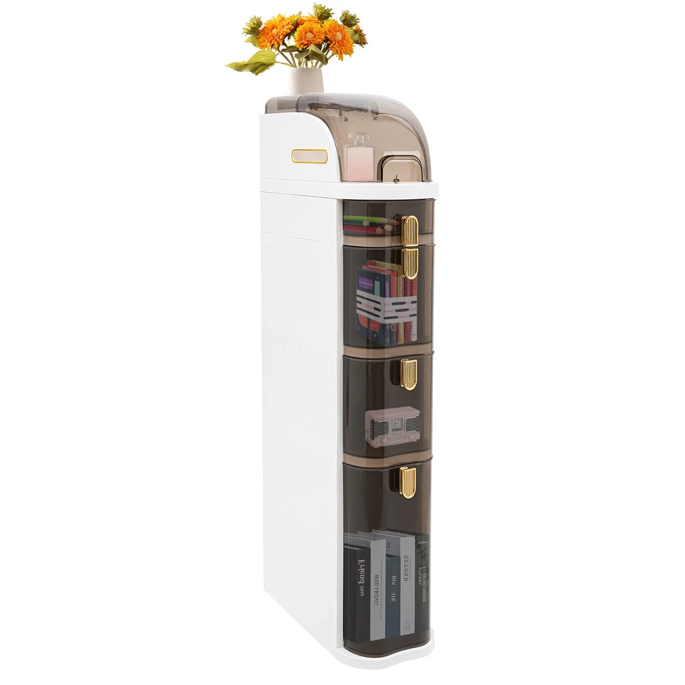 Plastic Slim Storage Cabinet,Rolling Narrow Organizer with Toilet Paper Holder Details Flip top lid The top lid adopts a flip design, making it easier to retrieve items. Semi-clear drawers and top Narrow storage cabinet with semi-clear drawers and top lid allow you to see items stored inside at a glance and easily access the items you need, which is convenient and time-saving. Toilet Paper Holder It allows you to easily extract tissues without opening the lid. Moreover, it can also serve as a handle to facilitate moving this item. Practical Wheels Four wheels at the bottom allow you to easily move the product to a suitable position, and it is removable, which you can choose to install or not. Suitable for installing more scenes Specifications Material: PP, PET Surface Treatment: Brightening Process Color: White, Clear Brown Style: Modern Shape: Rectangular Mount Type: Free Standing Number of Drawers: 4 Assembly Required: No 16.1"D x 7"W x 38.6"H Package Included 1* Storage Cabinet 4* Wheels Notes Please allow the slight color difference caused by the shooting light and 1-3cm error due to manual measurement, and make sure you do not mind before you order . Payment Delivery details Terms of sales About us Contact us Payment We accept ebay payment 。 Fees such as import duties, taxes are not included in the item price or shipping costs. These charges are the buyer's responsibility. Delivery details Shipping: 2-9 working days to: USA Terms of sales We maintain high standards of excellence and strive for hundred percent customer satisfaction. Feedback is very important to us. We hope that you contact us immediately before you give neutral or negative feedback, so that we can address your concerns. It is impossible to address issues if we do not know about them! About us Your satis faction is our ultimate goal. We work hard to earn your trust and future business. Our certified technicians have tested each item before shipping. The unit comes with 1 year limited warranty on all manufacturing defects. a) If you receive a defective item, you may return it or ask for a discount. Please contact us within 14 days after you receive the package. b) What you returned must be intact and in its original packaging as re? u. Customer is responsible for shipping costs of the returned item. c) We will cover the cost of shipping back t with the shipping rate indicated in the registration page. We will send you a new unit or refund the full payment you paid. Thank you. Contact us Business Hour Business Hour: Monday To Friday: 8:30 AM to 5:00 PM (Beijing China time) Due to time zones, our reply to your questions may not be immediately. But within above working time, we will reply your email within 24 hours. If it's non-workdays, please kindly be patient and wait till Monday. Please contact us with ebay message. Please feel free to contact us if you have any questions. Monday To Friday: 8:30 AM to 5:00 PM (Beijing China time) Due to time zones, our reply to your questions may not be immediately. But within above working time, we will reply your email within 24 hours. If it's non-workdays, please kindly be patient and wait till Monday. Please contact us with ebay message. Please feel free to contact us if you have any questions. Brand Unbranded MPN N/A Item Height N/A Item Length N/A Item Width n/a Type Cabinet