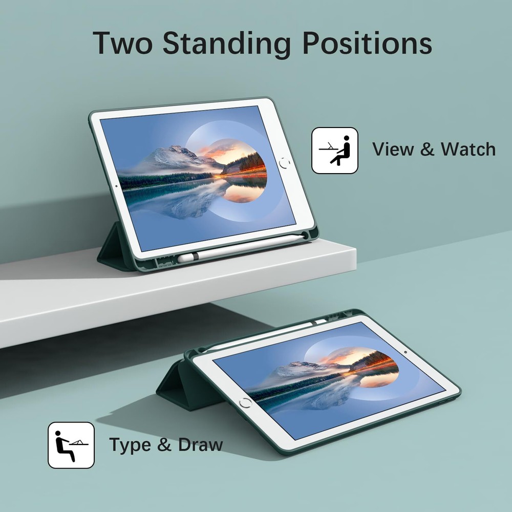 Divufus Case for iPad 10.2 2021/2020/2019, Smart Lightweight Trifold Stand Cove Features: [Compatibility] - Protective case for Apple iPad 10.2 inch 7th 8th 9th gen(Fit models: A2602/A2603/A2604/A2605/A2270/A2428/A2429/A2430/A2197/A2200/A2198). NOT compatible with any other devices. [Sensitive Auto Sleep/Wake Feature&Durable Material] - Intelligent magnetic sleep/wake, ensuring fast response and low power loss, extending battery life. The soft TPU back shell protect the machine, easy to install/remove, and the microfiber lining brings velvet-like protection to your screen. Dust and dirt resistant. [Full Protection&100% fit] - The back shell is all silicone wrapped to cushion the impact of falling. The thickness is higher than the camera, to prevent wear and tear. Precise cutouts, button wrapping, restore original touch, easy to press, maximum scratch resistance. [Built-in Apple Pencil Holder&The tri-fold front cover] - Built-in pen slot can stably place the stylus, prevent the pen from falling, losing, easy to take out the pen. Tri-fold standing, 65°/30° dual-use support Angle, light and portable, anytime to meet the needs of viewing & typing. Anti-slip interior design, with more stable support function. [Divufus Warranty] - Includes Divufus limited 6-month warranty. If you have any questions, we will follow up with yous within 24 hours. We provide 100% quality solutions to give you a hassle-free shopping experience. Features: [Compatibility] - Protective case for Apple iPad 10.2 inch 7th 8th 9th gen(Fit models: A2602/A2603/A2604/A2605/A2270/A2428/A2429/A2430/A2197/A2200/A2198). NOT compatible with any other devices. [Sensitive Auto Sleep/Wake Feature&Durable Material] - Intelligent magnetic sleep/wake, ensuring fast response and low power loss, extending battery life. The soft TPU back shell protect the machine, easy to install/remove, and the microfiber lining brings velvet-like protection to your screen. Dust and dirt resistant. [Full Protection&100% fit] - The back shell is all silicone wrapped to cushion the impact of falling. The thickness is higher than the camera, to prevent wear and tear. Precise cutouts, button wrapping, restore original touch, easy to press, maximum scratch resistance. [Built-in Apple Pencil Holder&The tri-fold front cover] - Built-in pen slot can stably place the stylus, prevent the pen from falling, losing, easy to take out the pen. Tri-fold standing, 65°/30° dual-use support Angle, light and portable, anytime to meet the needs of viewing & typing. Anti-slip interior design, with more stable support function. [Divufus Warranty] - Includes Divufus limited 6-month warranty. If you have any questions, we will follow up with yous within 24 hours. We provide 100% quality solutions to give you a hassle-free shopping experience. eBay integration by