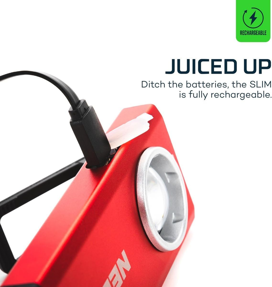 MULTI-USE POCKET FLASHLIGHT 500 LUMEN: Not sure whether you should carry a pocket flashlightor a headlamp; the SLIM is the best COB LED light for you -carry it, hook it, adhere it to a metal surface with magnetic base, or clip it to your shirt DURABLE LED RECHARGEABLE WORK LIGHT: Constructed from anodized aircraft grade aluminum & designed to suit your everyday needs–compact portable design is great for camping, fishing, traveling, car repair, or emergencies STRONG MAGNETS: Incorporated in the clip and base of the NEBO SLIM is a strong magnet which will adhere to any metal surface; This is perfect while working under the hood of your car, in your home or a number of other places RECHARGEABLE LIGHTS VIA MICRO USB CHARGING PORT: You get up to 10 hours of use with the NEBO SLIM and it takes up to 6 hours for the flashlight to fully recharge; the MICRO USB to USB charging cable is included with all NEBO SLIM magnetic flashlights Product Description