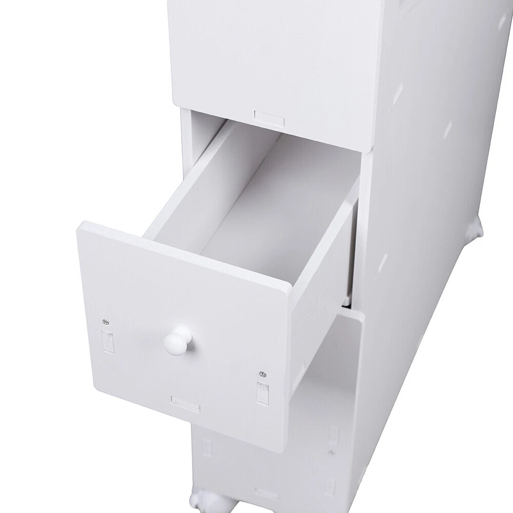 Description Bathrooms often occupy a small area, but they store a lot of items, including toiletries, tissues, towels, and even some cleaning supplies, which can easily make this small space messy. But as long as the storage is done well, even small spaces can be opened up. Our toilet side cabinet has a small footprint, but it also has powerful storage functions. 4 tiers can accommodate a variety of toiletries and cleaning products, which is a good solution to improve space utilization. Key Features High-quality Material: Made of high-quality PVC, this product is not easy to corrosion and deformation and can resist a damp bathroom environment. Easy to Access: The pull-out drawer design of the lower tiers, the open structure of the upper tiers, and the humanized slots make it easy for you to access items like tissues and shampoos. Storage Assistant: The 4-tier design provides you with a lot of storage space to categorize items like shampoo and creams in different parts, bidding farewell to cluttered stacking. There is a compartment for paper towels for your convenient use. Excellent Load-bearing Capacity: The thickened materials and sturdy structure give it an overall load-bearing capacity of about 44.09 pounds, which can withstand enough things to be placed on it. Flexible Moving: Four lockable universal wheels make it easy for you to move this product from one room to another, making it flexible and convenient to use. Space Saving: Its compact footprint of 20.5*6.4 inches makes it able to fit into relatively narrow spaces, greatly improving the utilization rate of space. Modern and Simple: The classic white color and simple rectangular geometric structures give this product a modern outlook that fits various styles of rooms. Easy to Clean: Because of its simple structure and smooth surface, you can use a rag to easily wipe it clean. Details Top Grooves: Grooves on the top lids can facilitate you to open the lids and add supplies. Practical Knobs: They allow you to easily pull out and close drawers. Toilet Brush Slot: It can help you store toilet brushes and further reduce clutter in the bathroom. Application This product is suitable for storing tissues, shampoos, creams, towels, and so on in the bathroom, hallway, living room, study, bedroom, laundry room, kitchen, etc. Specification Color: White Style: Modern Material: PVC Process: Carving Number of Layers: 4 Number of Wheels: 4 Assembly Required: Yes Mount Type: Free Standing Overall Max. Load Capacity: 20kg/44.09lbs Bottom Drawer Height: 30cm/11.81in Side Open Size: 30*19cm/11.8*7.5in Slot Length:18cm/7.1in Product Size: 52*16.2*75cm/20.5*6.4*29.5in Gross Weight: 6.5kg/14.3lbs Package Included 1 * Toilet Side Cabinet Other Accessories for Assembly Notes Please do not use hard or rough objects to clean this product. Please allow the slight color difference caused by the shooting light and 1-3cm error due to manual measurement, and make sure you do not mind before ordering. Payment Delivery details Terms of sales About us Contact us Payment We accept ebay payment 。 Fees such as import duties, taxes are not included in the item price or shipping costs. These charges are the buyer's responsibility. Delivery details Shipping: 2-9 working days to: USA Terms of sales We maintain high standards of excellence and strive for hundred percent customer satisfaction. Feedback is very important to us. We hope that you contact us immediately before you give neutral or negative feedback, so that we can address your concerns. It is impossible to address issues if we do not know about them! About us Your satis faction is our ultimate goal. We work hard to earn your trust and future business. Our certified technicians have tested each item before shipping. The unit comes with 1 year limited warranty on all manufacturing defects. a) If you receive a defective item, you may return it or ask for a discount. Please contact us within 14 days after you receive the package. b) What you returned must be intact and in its original packaging as re? u. Customer is responsible for shipping costs of the returned item. c) We will cover the cost of shipping back t with the shipping rate indicated in the registration page. We will send you a new unit or refund the full payment you paid. Thank you. Contact us Business Hour Business Hour: Monday To Friday: 8:30 AM to 5:00 PM (Beijing China time) Due to time zones, our reply to your questions may not be immediately. But within above working time, we will reply your email within 24 hours. If it's non-workdays, please kindly be patient and wait till Monday. Please contact us with ebay message. Please feel free to contact us if you have any questions. Monday To Friday: 8:30 AM to 5:00 PM (Beijing China time) Due to time zones, our reply to your questions may not be immediately. But within above working time, we will reply your email within 24 hours. If it's non-workdays, please kindly be patient and wait till Monday. Please contact us with ebay message. Please feel free to contact us if you have any questions. On Jul 29, 2025 at 19:14:24 PDT, seller added the following information: