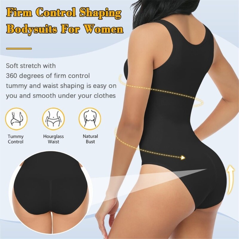 This slimming bodysuit is a game-changer! The tummy control is firm yet comfortable, smoothing everything out without feeling restrictive. The stretchy fabric moves with you all day, and the round neck adds a classy touch. Perfect under dresses or alone, it gives a flattering silhouette while staying breathable. Postpartum moms and anyone wanting extra confidence will love how it shapes without sacrificing comfort. The sizing is inclusive, fitting various body types beautifully. A must-have for effortless shaping!