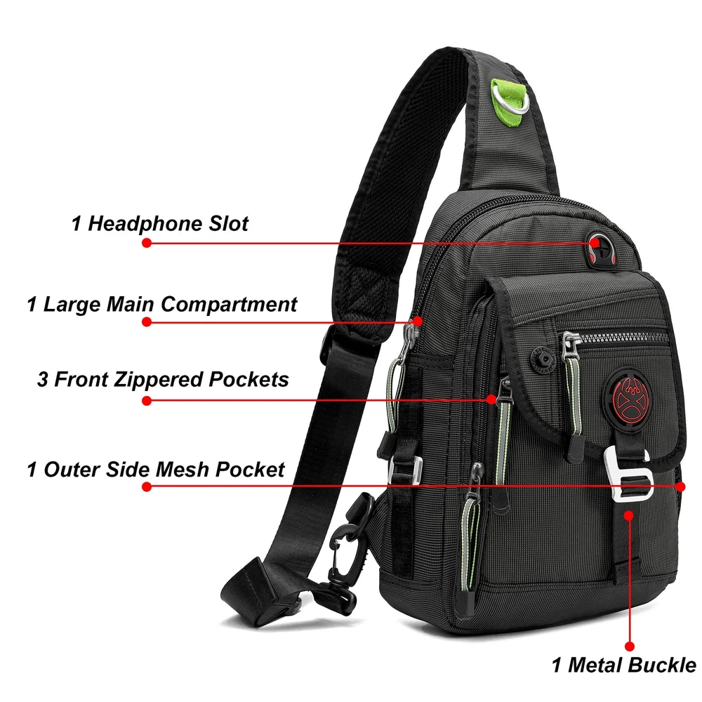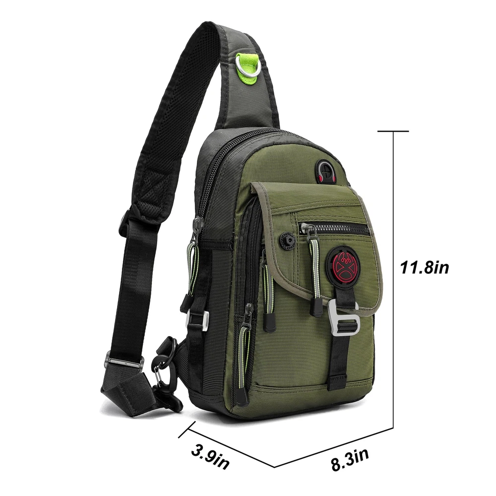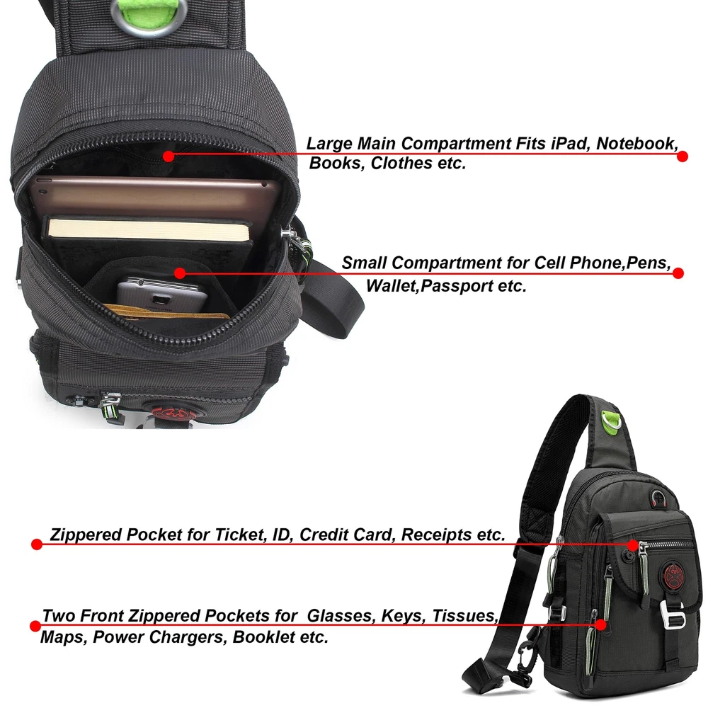Material: lightweight, water-resistant nylon material. Strap and the back are padded, comfortable to wear carry-on. Dimension: 8.3*3.9*11.8 inch (L*W*H). It is can used as a chest pack, shoulder bag, messenger bag, travel bag. Fit both regular and plus-size person. Internal: The large compartment with a small tablet inner pouch fit camera, umbrella, or a lightweight jacket. A eraphone hole connected to outside. Exterior: 3 zip pockets on the front,1 large deep pocket on the back, and 1 meshy side bottle pouch fit all your needs. Practical: Great for travel, hiking, or outdoor living and sports. Or trips to the amusement park.