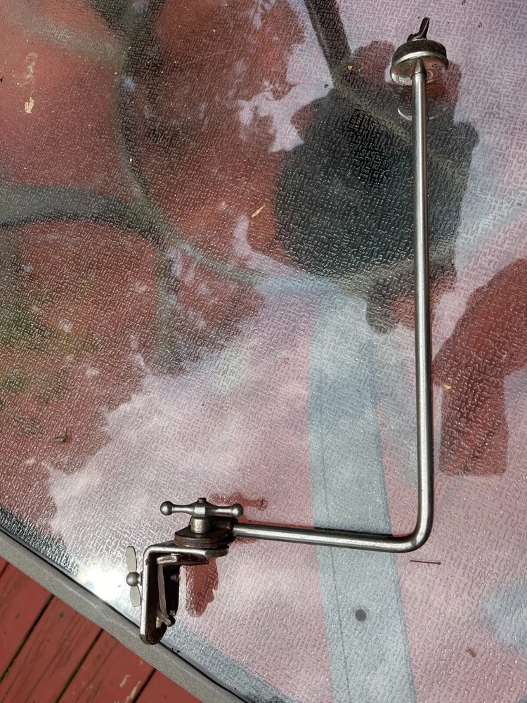Vintage Slingerland bass drum mounted cymbal arm from a 1940’s Radio King drum set. Measures 6” horizontally and 13” vertically. All original including the old style original fasteners and components. Will ship internationally.
