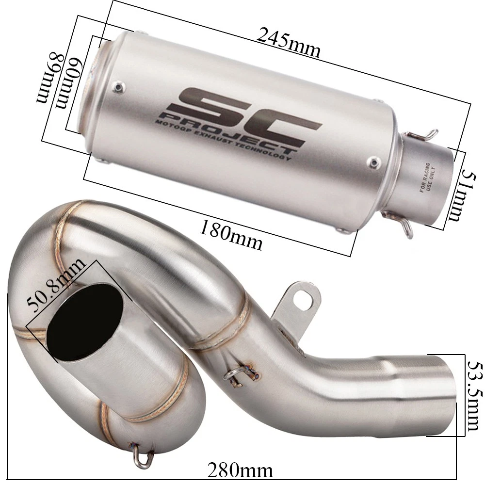 Slip for Kawasaki Ninja ZX6R ZX636 2009 -2024 Exhaust Mid Link Pipe Muffler Tips Specification: Condition: Brand New Material: Stainless Steel Diameter: 51mm/2inch Type: Exhaust Tail Pipe + Exhaust Mid Link Pipe Features: Removable, Easy installation. 100% New and durable and high quality. Makes your motorcycle roar with outstanding sound and helps to obtain maximum output, ensuring its top performance. Fitment: 2009-2024 Kawasaki Ninja ZX6R ZX636 Package included: 1x Exhaust Tail Pipe 1x Exhaust Mid Link Pipe 1x Accessories Set Note: 1. Installation instruction is NOT included. 2. Please allow 1-3mm error due to manual measurement, thanks. 3. Please take out the 51-38mm adapter in the muffler before using. 4. DB Killer (Just a Gift) is more suitable to be installed inside the link pipe than inside the muffler.
