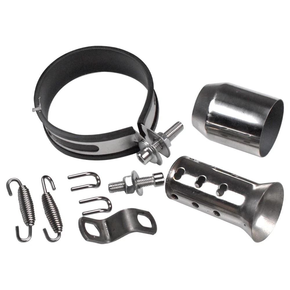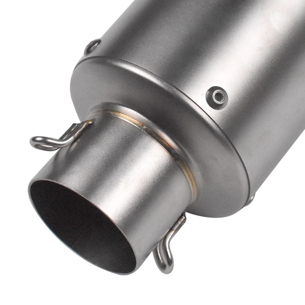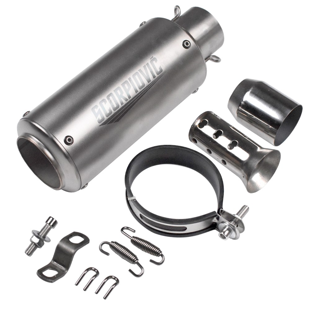 Slip-on 51mm Universal Motorcycle Exhaust Muffler Pipe Tail Tips Round Titanium Specification: Condition: Brand New Color: Round Titanium Material: Stainless Steel Length: 245mm Diameter: 51mm/2inch Type: Exhaust Pipe Features: 100% New and durable and high quality, Easy installation. Fitment: It Is Universal Muffler Can Be Used For Dirt Bike, Street Bike, Scooter, ATV, Quad And Any Other Bike With Pipe Diameter 38-51 mm This muffler can be used for most of motorcycle, diameter 38-51 mm, not for all types motorcycles. Package included: 1x Exhaust Pipe 1x Accessories Set Note: 1. Installation instruction is NOT included. 2. Please allow 1-3mm error due to manual measurement, thanks. 3. Please take out the 51-38mm adapter in the muffler before using. 4. DB Killer (Just a Gift) is more suitable to be installed inside the link pipe than inside the muffler.