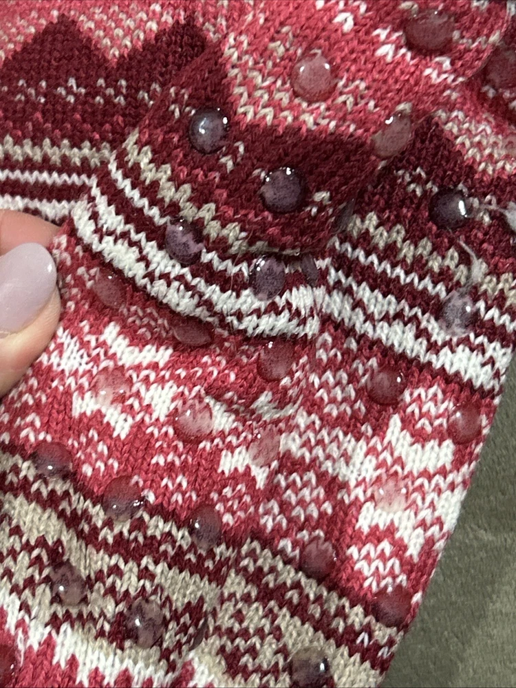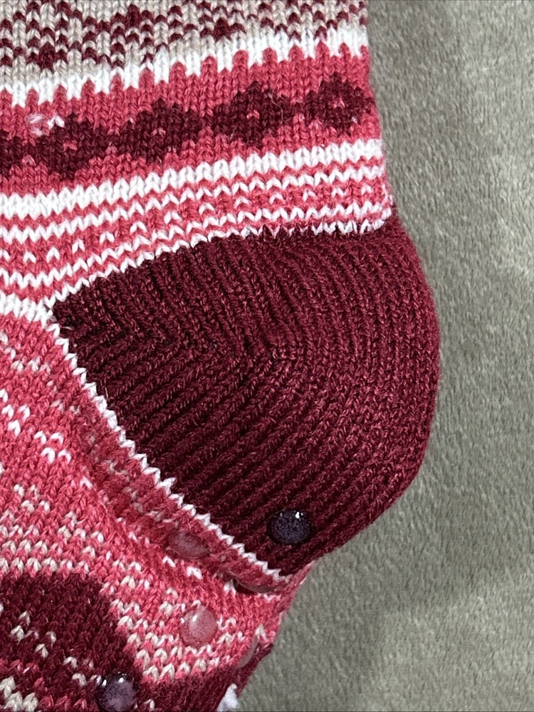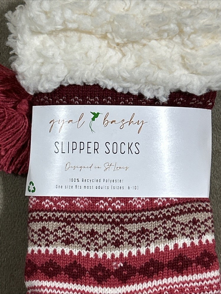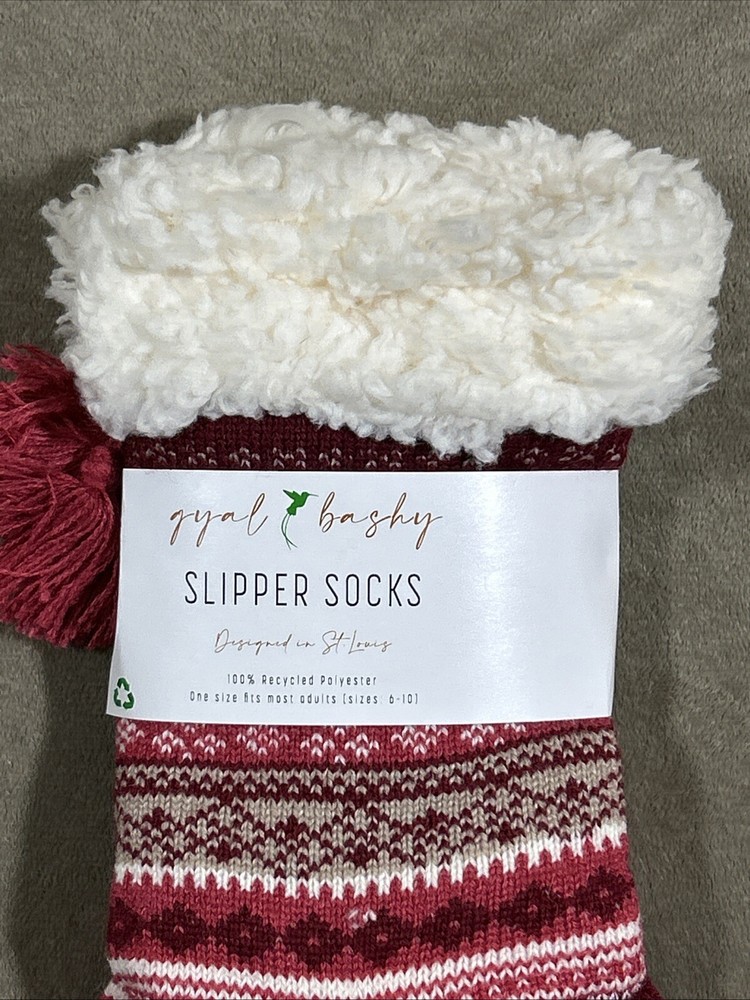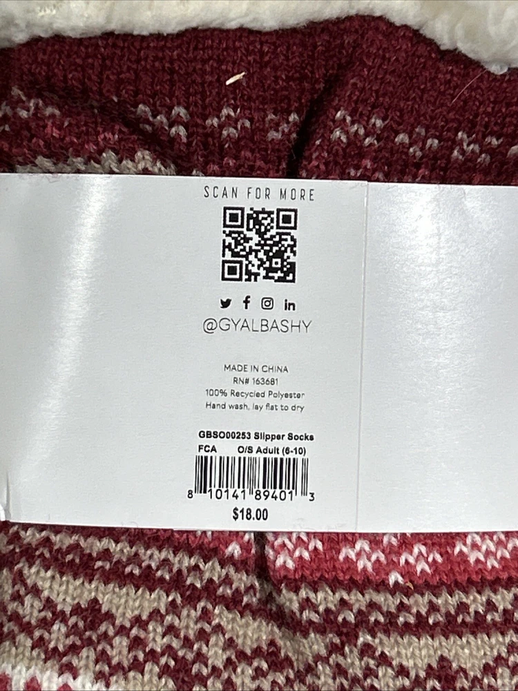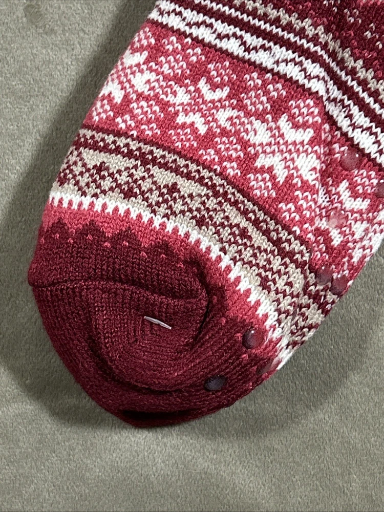Slipper Socks Adult 6-10 Red Print Winter Recycled Polyester Gyal Bashy Soft NWT