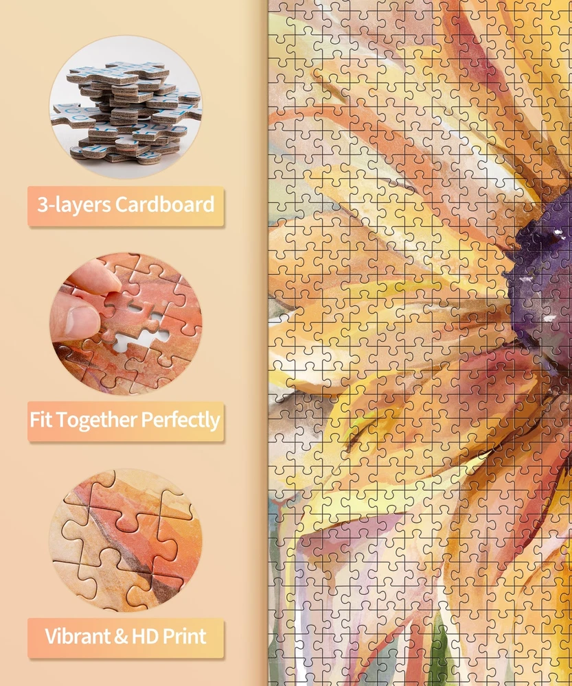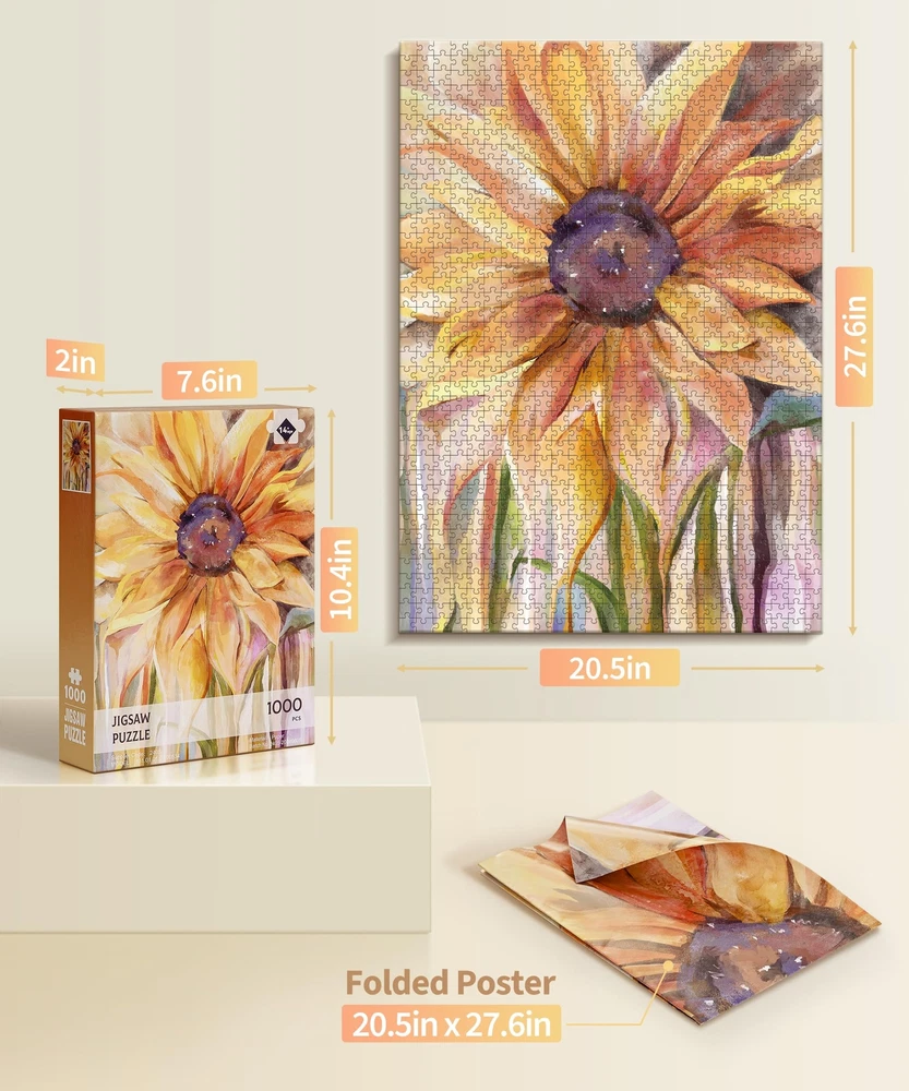 Slody Puzzles for Adults 1000 Pieces Sunflower 1000 Piece Puzzle for Adults with Letters on Back Flower Jigsaw Puzzles Kit for Family Friends Game Night 【Puzzle with Letters】Unlike other jigsaw puzzles, our 1000 piece puzzles for adults include letters in the back, which helps prevent confusion. You can enjoy the challenge without feeling overwhelmed. 【Fit Together Perfectly】: Our jigsaw puzzles kit indulge in the satisfaction of flawless connections and create a beautiful masterpiece. 【Evening Entertainment】Our 1000 piece puzzles are perfect for engaging friends night games and family night reunion. Round up your loved ones, grab our puzzle kit for adults, and embark on a unforgettable journey filled with laughter, collaboration, and the creation of precious memories. 【Great Gift Idea】Searching for the perfect gift for your loved ones? Our jigsaw puzzles 1000 pieces for adults make ideal presents for various occasions. Surprise them with a gift that combines entertainment and creativity! 【Unique Home Decor】Once you've completed the puzzles for adults 1000 pieces, you have the option to showcase it as a cool decoration. Hang it on the wall and let it become a stunning centerpiece that adds personality and style to your living space. 【Puzzle with Letters】Unlike other jigsaw puzzles, our 1000 piece puzzles for adults include letters in the back, which helps prevent confusion. You can enjoy the challenge without feeling overwhelmed. 【Fit Together Perfectly】: Our jigsaw puzzles kit indulge in the satisfaction of flawless connections and create a beautiful masterpiece. 【Evening Entertainment】Our 1000 piece puzzles are perfect for engaging friends night games and family night reunion. Round up your loved ones, grab our puzzle kit for adults, and embark on a unforgettable journey filled with laughter, collaboration, and the creation of precious memories. 【Great Gift Idea】Searching for the perfect gift for your loved ones? Our jigsaw puzzles 1000 pieces for adults make ideal presents for various occasions. Surprise them with a gift that combines entertainment and creativity! 【Unique Home Decor】Once you've completed the puzzles for adults 1000 pieces, you have the option to showcase it as a cool decoration. Hang it on the wall and let it become a stunning centerpiece that adds personality and style to your living space. Shipping from the USA All of our products are shipped from the USA, ensuring quick delivery to your destination. Payment We offer the following payment methods: PayPal, credit card, bank transfer, and eBay's secure payment system. Free Shipping & Free Returns Shipping within the USA is FREE. Additionally, any return is absolutely free for you. Risk-Free Purchase You have the option to return an item within 30 days without any justification. We cover the return shipping costs! Fast Shipping We ship immediately upon receipt of payment. Generally, the package is delivered within 2-3 days in the USA. If it takes longer, we will contact you. Quality and Costs Made in Europe, USA, China No customs fees or additional charges Total satisfaction guarantee Invoice with declared VAT available upon request in .pdf format Feedback Your feedback is very important to us. After you pay for your purchase, you will automatically receive positive feedback from us.