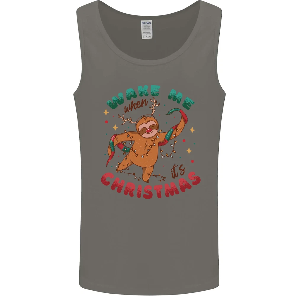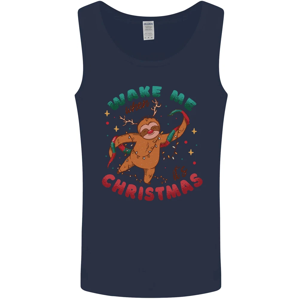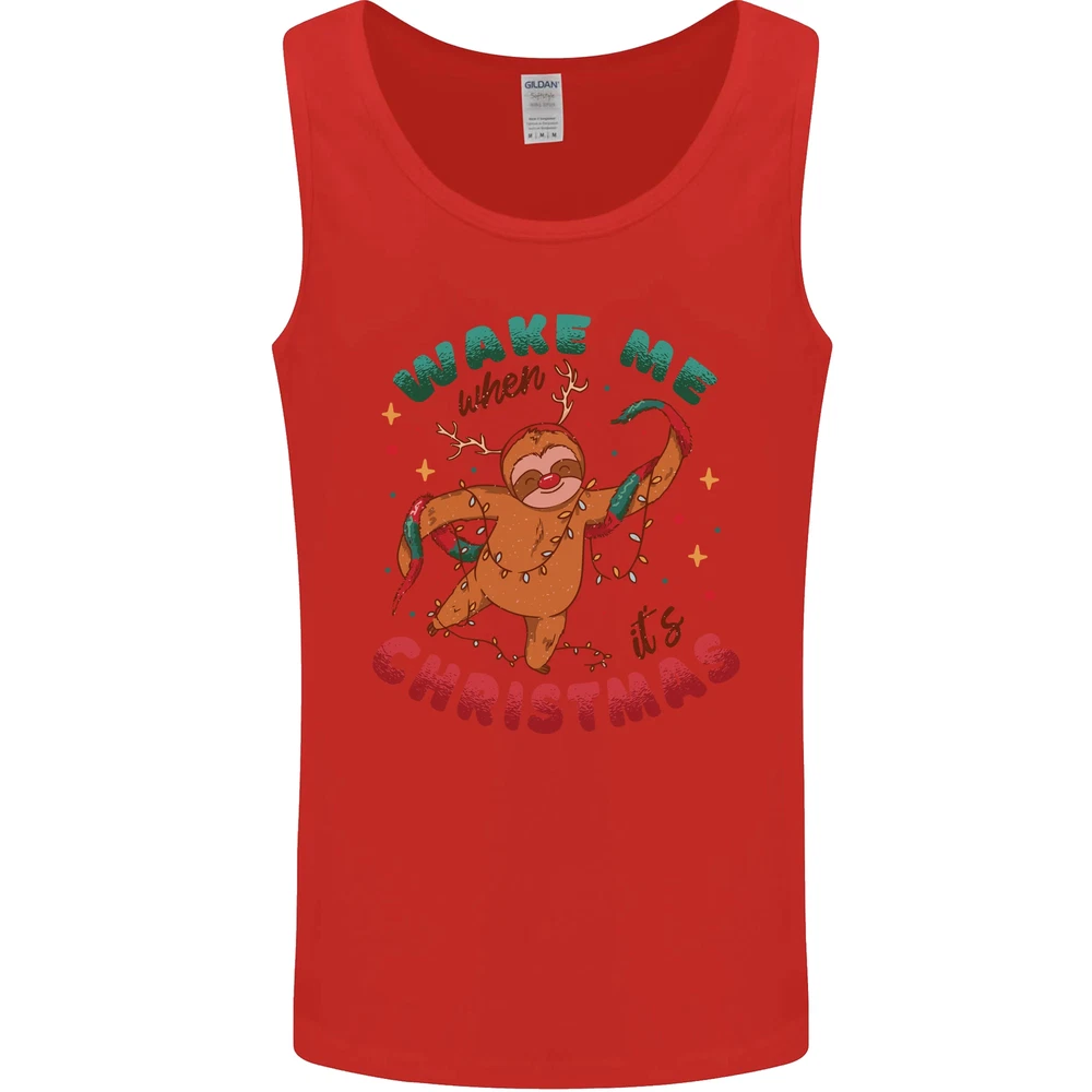 Sloth Wake Me Up When Its Christmas Mens Vest Tank Top