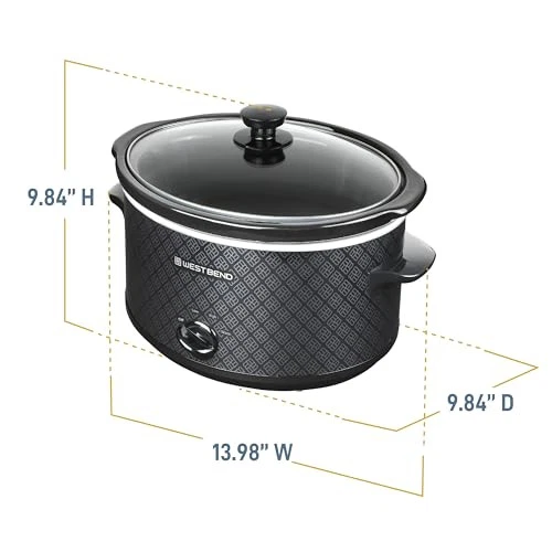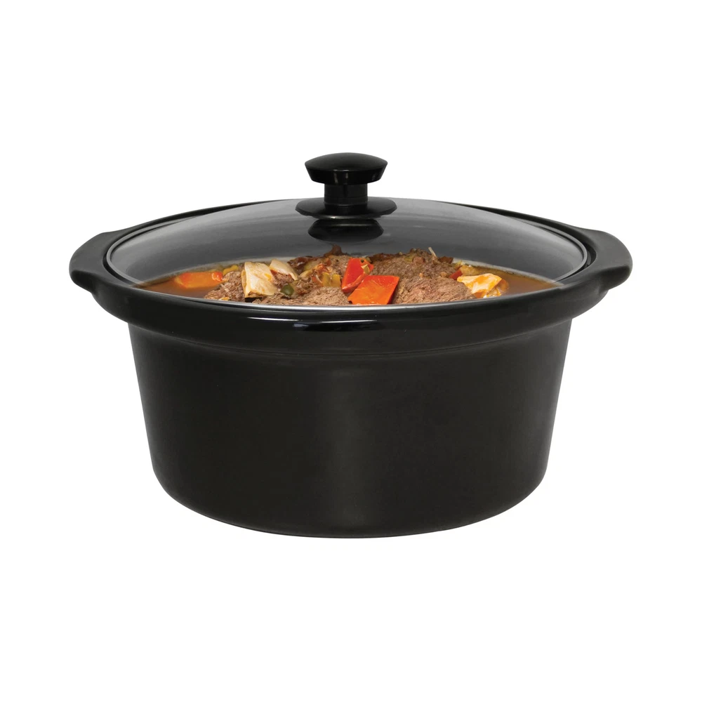 Embrace the ultimate cooking convenience and enjoy effortless meal preparation with the 4QT Slow Cooker that promises performance and exceptional results every time. With its 4-quart size, this slow cooker is designed to cater to 4 or more, making it the perfect companion for family meals. Simplify your meal preparation routine by loading up the cooking vessel with your ingredients of choice, select your preferred temperature setting from Low or High, and return home to perfectly cooked and ready-to-serve meals. Whether you're whipping up a savory chili or a tender pot roast, this versatile appliance ensures your dishes are cooked to perfection every time. Enjoy hassle-free cleanup post-feast with the dishwasher-safe ceramic crock and tempered glass cover. The 3 manual heat settings provide you with the flexibility to tailor your cooking experience. The convenient WARM setting keeps your meals at an ideal serving temperature until you're ready to dig in. Not just a kitchen workhorse, the 4QT Slow Cooker also boasts a beautiful design that will add a touch of elegance to your culinary space. Elevate your kitchen decor and simplify your cooking routine with this must-have appliance that combines style with functionality. Say goodbye to stressful meal prep and hello to delectable dishes with the 4QT Slow Cooker as your trusty cooking companion. 4QT CAPACITY: Designed to feed 4+ people, this slow cooker is perfect for family gatherings, dinner parties, or meal prep for the week ahead 3 HEAT SETTINGS: Turn the dial to choose from 3 heat settings. Cook your meal on High or Low and then switch to Keep Warm until ready to serve EASY CLEANUP: Includes a dishwasher-safe ceramic crock and tempered glass cover; cleanup has never been easier KEEP WARM FUNCTION: The convenient WARM setting ensures your meals stay at the ideal serving temperature, so you can enjoy your food when you're ready CONVENIENT: Stay cool handles for safety and removable stoneware insert doubles as a serving dish