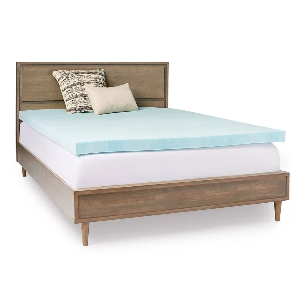 Eliminate pressure points on your body while you sleep with this comfortable Slumber Solutions gel memory foam mattress topper. Available with its own mattress cover, this memory foam mattress topper allows you to rejuvenate your old mattress for added softness. The durable cover is machine washable for easy care and cleaning.Gel infused into foam to prevent sheddingTopper sized slightly smaller than mattress to ensure proper fit of sheetsType: Gel Memory foamMattress topper measures 3 inches thickMaterials: Polyurethane foam and gelDensity: 3.5 poundsHelps rejuvenate tired muscles and eases back painMeets all flammability standards300 thread count 100-percent Egyptian cottonCover stretches to fit 17-inch mattressCover care instructions: Machine washDimensions: Twin: 37 inches wide x 73 Free Shipping Over $49.99* Details Slumber Solutions Gel Memory Foam 3-inch Mattress Topper with Cover Product Description: Eliminate pressure points on your body while you sleep with this comfortable Slumber Solutions gel memory foam mattress topper. Available with its own mattress cover, this memory foam mattress topper allows you to rejuvenate your old mattress for added softness. The durable cover is machine washable for easy care and cleaning. Gel infused into foam to prevent shedding Topper sized slightly smaller than mattress to ensure proper fit of sheets TypeGel Memory foam Mattress topper measures 3 inches thick MaterialsPolyurethane foam and gel Density3.5 pounds Helps rejuvenate tired muscles and eases back pain Meets all flammability standards 300 thread count 100-percent Egyptian cotton Cover stretches to fit 17-inch mattress Cover care instructionsMachine wash Dimensions Twin37 inches wide x 73 inches long Full52 inches wide x 73 inches long Queen58 inches wide x 78 inches long King75 inches wide x 78 inches long California king70 inches wide x 82 inches long Memory Foam Tips Remove from packaging within 72 hours of receipt to maximize memory foam expansion. This product arrives very tightly packed. Unwrap and allow 48 hours for this product to return to its original shape. Being sealed in plastic packaging sometimes traps odors. After unwrapping, allow product to air for a few hours. Due to machine-cutting manufacturing processes, there may be slight variances in the dimensions of this product. Due to the nature of Memory Foam the firmness level of every item is unique. Please be advised that even similar products may produce different firmness results. Click here to view mattress topper buying guide.