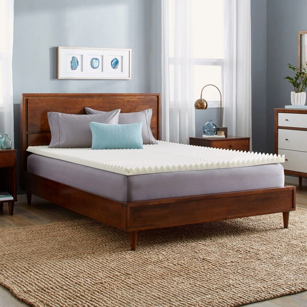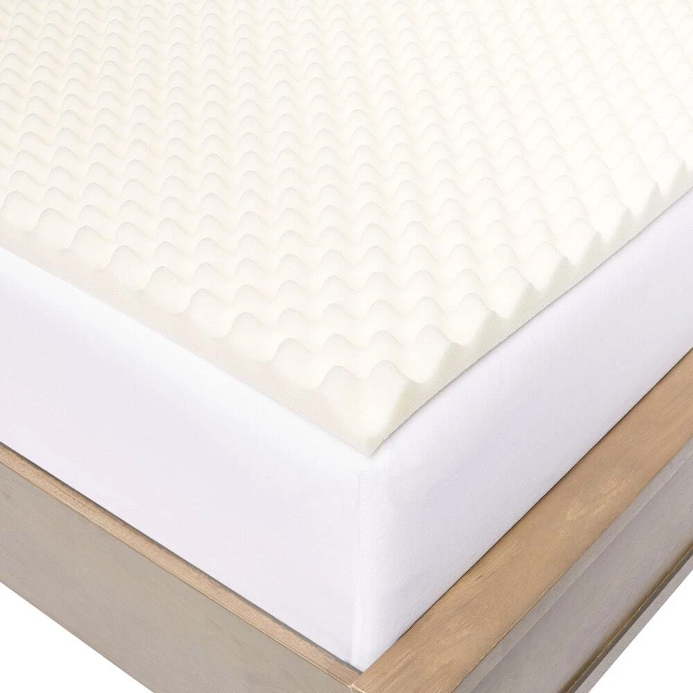 Sleep comfortably and wake up refreshed with this memory foam mattress topper developed using PostureFoam technology that provides support while sleeping at any position. The 2 inch mattress topper features a reversible-dual sleep design for a smooth and well textured sleep surface. Additionally, the foam textured design allows extra air flow in the mattress for maximum comfort.PostureFoam technology was developed to provide much greater air circulation throughout the pad, while creating the perfect support for every sleeping positionOpen air memory foam features an improved cell structure, designed to maintain the original shape and feel for the life of the productImproves your sleep so you wake refreshedReversible dual sleep design features your choice of smooth or textured sleep Free Shipping Over $49.99* Details Slumber Solutions Highloft Cool 2-inch Memory Foam Mattress Topper Product Description: Sleep comfortably and wake up refreshed with this memory foam mattress topper developed using PostureFoam technology that provides support while sleeping at any position. The 2 inch mattress topper features a reversible-dual sleep design for a smooth and well textured sleep surface. Additionally, the foam textured design allows extra air flow in the mattress for maximum comfort. PostureFoam technology was developed to provide much greater air circulation throughout the pad, while creating the perfect support for every sleeping position Open air memory foam features an improved cell structure, designed to maintain the original shape and feel for the life of the product Improves your sleep so you wake refreshed Reversible dual sleep design features your choice of smooth or textured sleep surface TypeMemory foam Textured foam design provides additional air flow for maximum comfort Density3 pounds Dimensions Twin37 inches x 72 inches Full51 inches x 72 inches Queen58 inches x 77 inches King75 inches x 78 inches California king70 inches x 80 inches Memory Foam Do's and Don'ts Remove from packaging within 72 hours of receipt. This product arrives very tightly packed. Please unwrap and allow 48 hours for this product to return to its original shape. Being sealed in plastic packaging sometimes traps odors. A few hours of airing usually removes the odor. Due to machine cutting manufacturing processes, there may be slight variances in the dimensions of this product. Topper dimensions may be slightly smaller than your mattress dimensions. Size has been designed to allow you to easily secure your fitted sheet over your new memory foam topper. Due to the nature of Memory Foam the firmness level of every item is unique. Click here to view other sizes. Click here to view mattress topper buying guide.