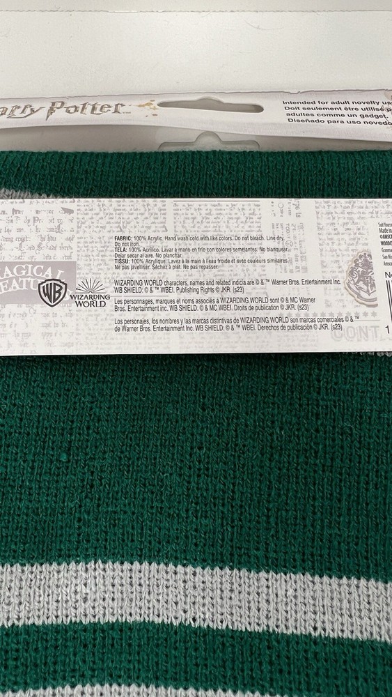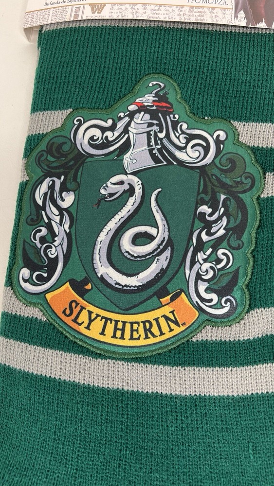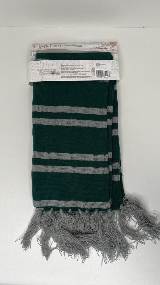 Up for purchase is a Wizarding World of Harry Potter Slytherin House Knit Scarf Wrap with fringe. It is green with gray stripes and has the Slytherin house crest on one end. 100% acrylic. Hand wash. Line dry. NEW. Approximately 48 inches long. Please look at all pictures for condition. The color in the pictures is not 100% accurate due to lighting. Non-smoking household. Import duties, taxes and charges are not included in the item price or shipping charges. These charges are the buyer's responsibility. Please check with your country's customs office to determine what these additional costs will be prior to bidding/buying. These charges are normally collected by the delivering freight (shipping) company or when you pick the item up – do not confuse them for additional shipping charges. I do not mark merchandise values below winning bid amount or mark items as "gifts" - US and International government regulations prohibit this practice.