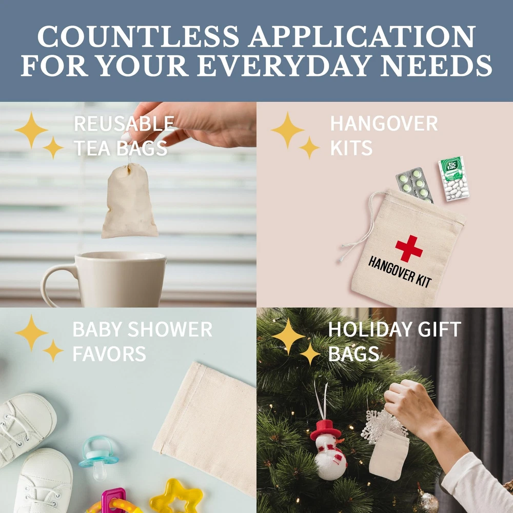 $ 15.7850pcs Small 3x4 Muslin Drawstring Bags - Reusable for Tea, Jewelry & Gifts