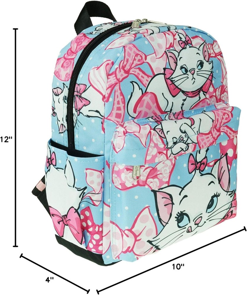 Durable 600-denier polyester exterior with full nylon interior lining Secondary front zipper pocket, Two side pockets Front organizer pocket for addition storage Adjustable shoulder straps, Fully padded back panel Backpack Measures: 12"H x 10"W x 4"D Official Licensed Product/ Manufacturer Minimum Age 3 years and older