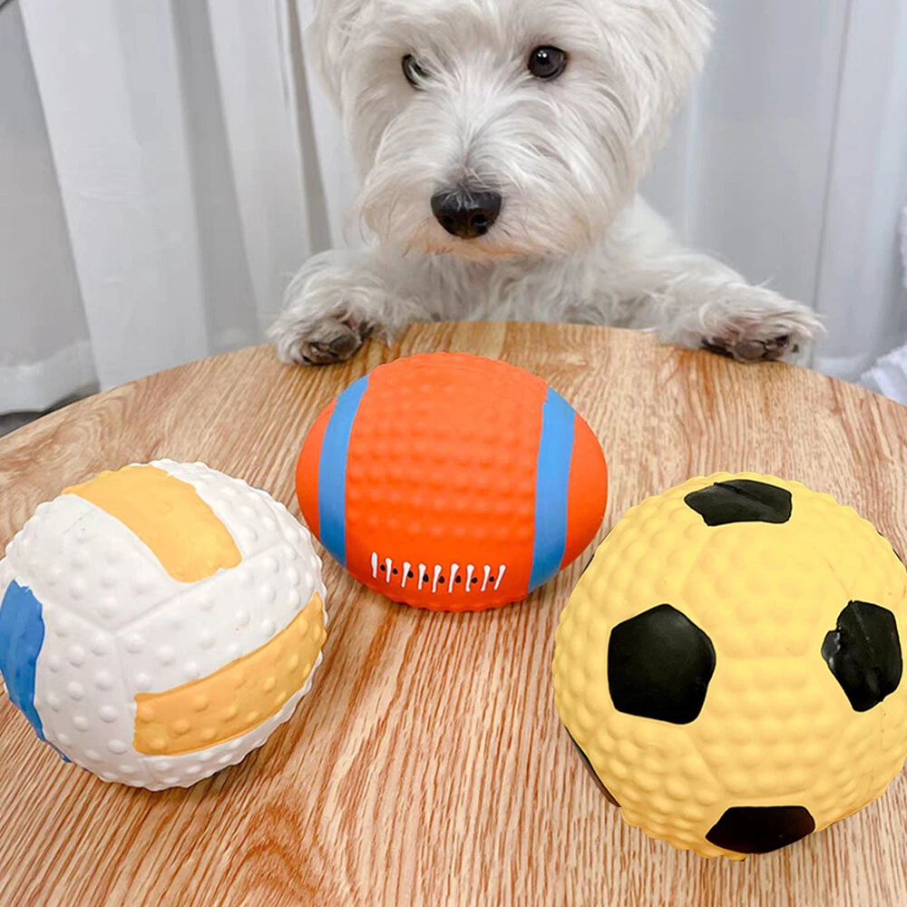Size: 75-110mm/2.95-4.33in Toys Type: Squeak Toys Product name: Pet Squeak Toys Ball shape: Small volleyball/Large volleyball/Rugby/Football(optional) MPN: Does Not Apply Material: latex, high elastic cotton Type: Other Origin: Mainland China