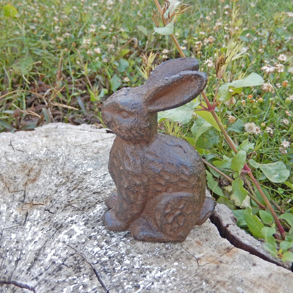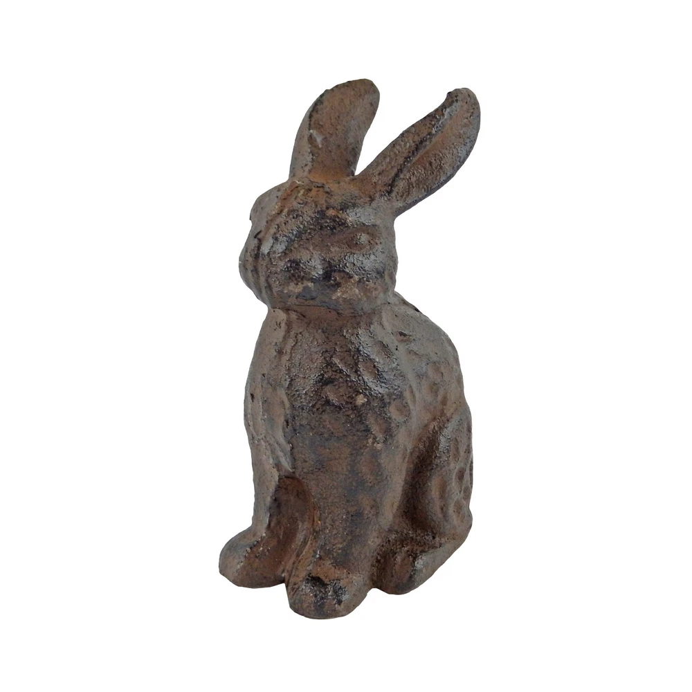 Type: Figurine Material: Cast Iron Height: 4 in Width: 1 3/4 in Color: Brown Depth: 3 in Animal Class: Rabbit