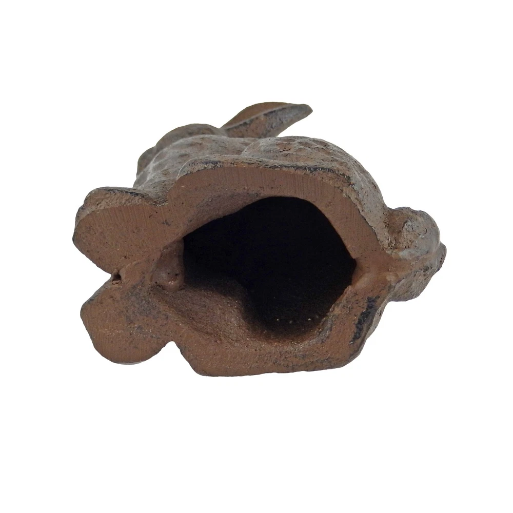 Small Cast Iron Bunny Rabbit Figurine Shelf Sitter Garden Yard Decor Brown #UX-4383 New bunny rabbit figurine Made of solid cast iron Rustic antique brown patina finish It measures 4 inches tall, 1 3/4 inches wide, 3 inches front to back It can be used to decorate your garden or as a shelf sitter