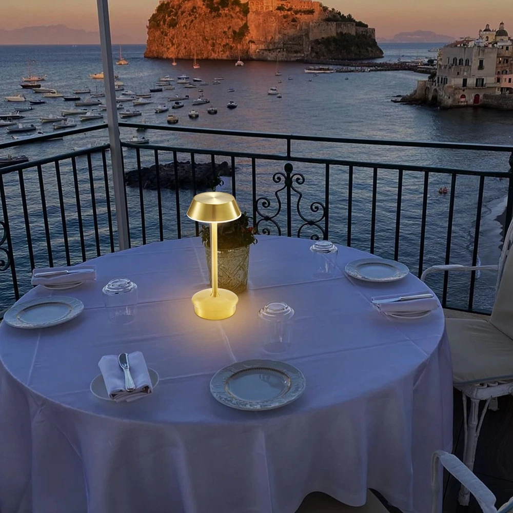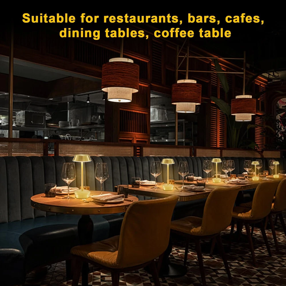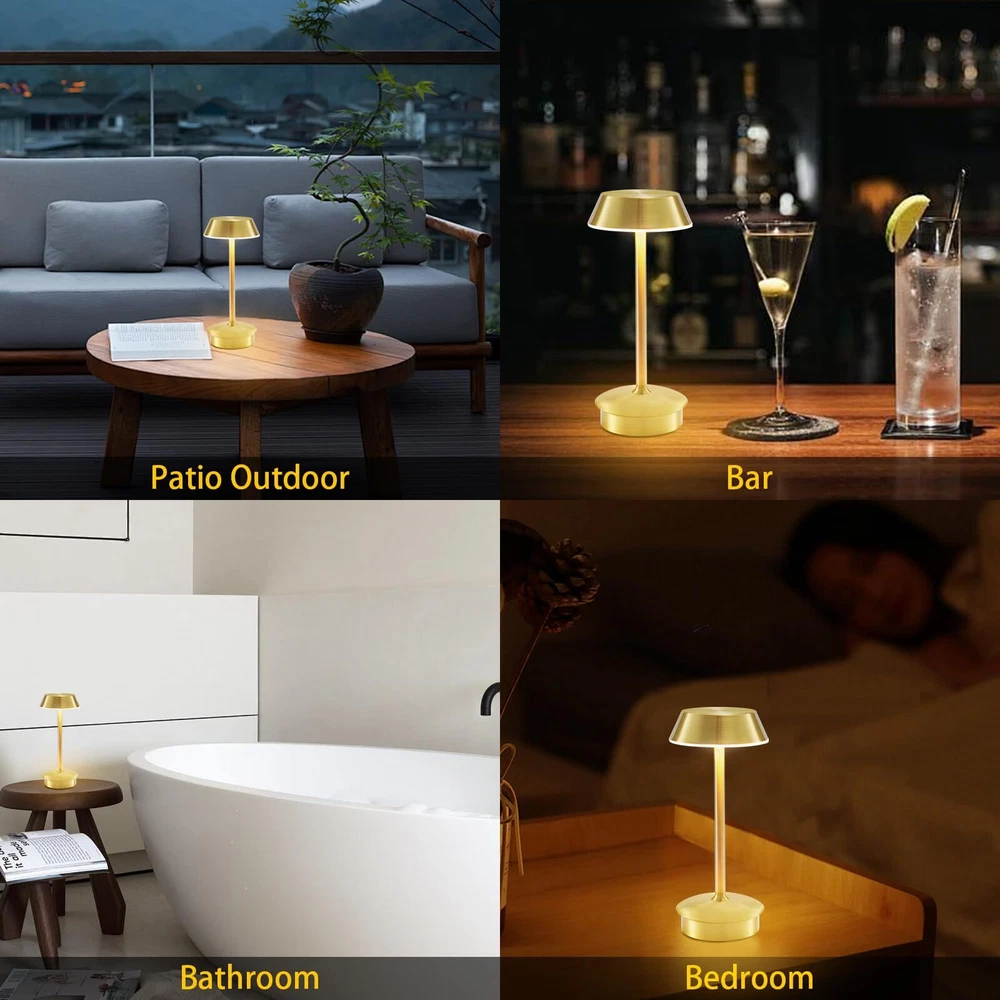 Portable Battery Table Lamp: Our small cordless table lamp utilizes advanced electroplating treatment, providing a sturdy and fade-resistant surface. Compared to other small table lamps on the market, this LED table lamp features 40 bright LED bulbs and a 4000mAh large-capacity rechargeable battery. The maximum brightness is higher, and it also supports longer working time at the same brightness setting. With its small and portable size, this rechargeable table lamp can be placed anywhere, such as hallways, kitchen counters, desks, card tables, and bookshelves. Moreover, it can be carried outdoors for camping or served as a atmosphere decor on patio tables or terraces 3 Lighting Colors & Stepless Dimmable: The cordless led table lamp has a dimmable touch sensor featuring 3 lighting colors: cool light (6500K), warm color (2700K), natural light (4600K). Easy to use! You can switch the light color by tapping the lampshade briefly or by tapping and holding it to adjust the brightness steplessly. The lowest setting of warm light is helpful for better sleep, while the highest setting of natural or cool light provides ambient lighting for home decor, reading, working. It can work for 10 to 48 hours after being fully charged Pretty Decor: This gold table light is made of sturdy aluminum alloy, featuring a minimalist cone design that resembles a giraffe when it lights up. With brushed surface finishing and shining appearance, it will be an attractive indoor and outdoor décor piece absolutely. The anti-glare acrylic panel can gently diffuse the warm light, creating a comfortable ambiance for various scenes, including restaurant, bar, dinner table, coffee table, living room, bedroom, bathroom, office Ideal for Most Occasions: The round lampshade on portable table lamp offers 360 degrees lighting, creating a cozier and more romantic atmosphere. This battery operated table lamp can used as mood lighting to adorn your home or dining areas. Moreover, you can use this cordless lamp for lighting for power outage. It can place in living room, dining room, bedroom, study room, game table, bar, café, guest room, dorm, garden, patio, porch, outdoor camping, picnic, etc. This's a nice gift Versatility and Portability: This small table lamp's cordless design is perfect for use in areas without outlets and flexible to move around everywhere without worrying about cords twisting annoyance. Moreover, the rechargeable table lamp also serves as a reliable light source during power outages. Choosing battery-operated lamp will be a wise choice