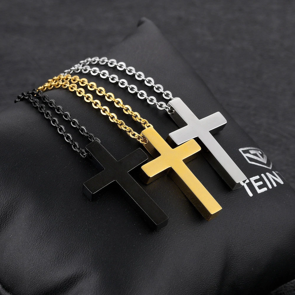 Small Cross Pendant Necklace for Women Boy Girl Pendant Curb Chain Gift 16inch
