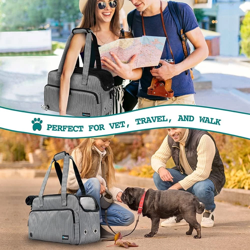 Store New Arrivals Add to Favorite View Feedback Contact Small Dog Purse Carrier, Soft-Sided Pet Carrier Bag with Pockets, Portable Puppy Cat Travel Handbag Tote, Airline Approved Breathable Mesh, Poop Bag Dispenser, Max 18 Lbs, Stripe Black Description Item model number A-1093 Item Dimensions LxWxH 17 x 8 x 11 inches Color Stripe Black Product Dimensions 17"L x 8"W x 11"H Material Polyester Item Weight 1 Pounds Target Audience Keyword dogs Department unisex Target Audience Cat, Rabbit, Dog Item Package Dimensions L x W x H 17.44 x 10.79 x 2.4 inches Size Medium IDEAL FOR SMALL MEDIUM SIZED PETS: Measures approximately 17 x 8 x 11 Inches (L x W X H), WEIGHT LIMIT up to 18 lbs. Fits most small/medium sized dog, cat, puppy, kitten, rabbit and pet. Before purchasing please measure your pet - LENGTH: neck to base of tail; HEIGHT: floor to top of shoulder. COMFORTABLE AND BREATHABLE: Well ventilated design for optimal airflow; entire top opens for convenient entry and zipped cover flap for privacy; also comes with thick cozy sherpa lined bedding so your pet can rest and relax. This handbag carrier is firmly structured, providing ample room for your pet to move around. SAFE AND SECURED DESIGN: Made with durable 6000D high grade polyester for a long-lasting experience. Equipped with a firmly reinforced structure to prevent itself from collapsing on your pet while traveling. Also comes with a safety strap and buckle inside to secure your pet and prevent escape. FUNCTIONAL AND CONVENIENT: Comes with poop bag dispenser feature, a front pocket, several mesh pockets on the side to store essential pet supplies. The handle strap is sturdy and durable, allowing you to carry this pet tote bag by hand or on your shoulder. STYLISH PET PURSE CARRIER BAG: This airline approved pet tote bag is perfect for small or medium sized dogs and large cats. Designed for the maximum convenience and comfort for daily use, shopping, traveling and vet visit. Product Description The Best Soft-Sided Pet Travel Carrier For You and Your Pal! Comfort For Your Pet Sherpa lined bed for your pet to travel comfortably while adding reinforced structure and a sturdy base. Multiple mesh windows for better airflow and outside view for your pet. Large opening top access for convenient entry and exit. Safety Safety buckle and leash to ensure extra security for your pet and to prevent escape. Comfort For You Long handle straps for shoulder carrying or handheld PetAmi Soft-Sided Pet Travel Carrier Measurements 17 x 8 x 11 Inches (L x W x H) Weight Capacity: Up to 18 lbs. Ideal for small dogs and small to medium sized cats Note Before purchasing please measure your pet - LENGTH: neck to base of tail; HEIGHT: floor to top of shoulder ABOUT US We offer the best prices around on high quality products. Our E-store includes media such as books, movies, music and games while offering electronics, toys, sporting apparel, clothing, tools, general home, garden items and more. SHIPPING We are always working hard to ensure your package arrives as soon as possible. Please understand that some factors like weather, high postal traffic, and the performance of shipping companies are outside of our control. We offer free shipping to the lower 48 states and ship within 2 business days of payment, usually sooner. We do not accept P.O. Boxes. Please provide a physical address. For shipping outside of the continental USA, we only use eBay's Global Shipping Program.The item is shipped to KY and then sent to the rest of the world. International customers are responsible for all duties and taxes. Continue to check out in order to calculate costs for shipping the item to your country. Messages regarding eBay's Global Shipping Program MUST be directed at eBay EXCLUSIVELY. RETURNS We offer a 30-Day Return Policy on items which you are not completely satisfied with. You have the option for a full-refund or an exchange of the item. No returns are available on items shipped outside of the USA. PAYMENT We accept PayPal. CONTACT US This page content is yet to come Please ad us to your favorite seller and visit again later Thank You CUSTOMER SATISFACTION We try our very best to make sure every customer is completely satisfied. If there's a problem, message us! We're happy to help. WE ACCEPT Copyright © 2021 AutoDS. | All Rights Reserved