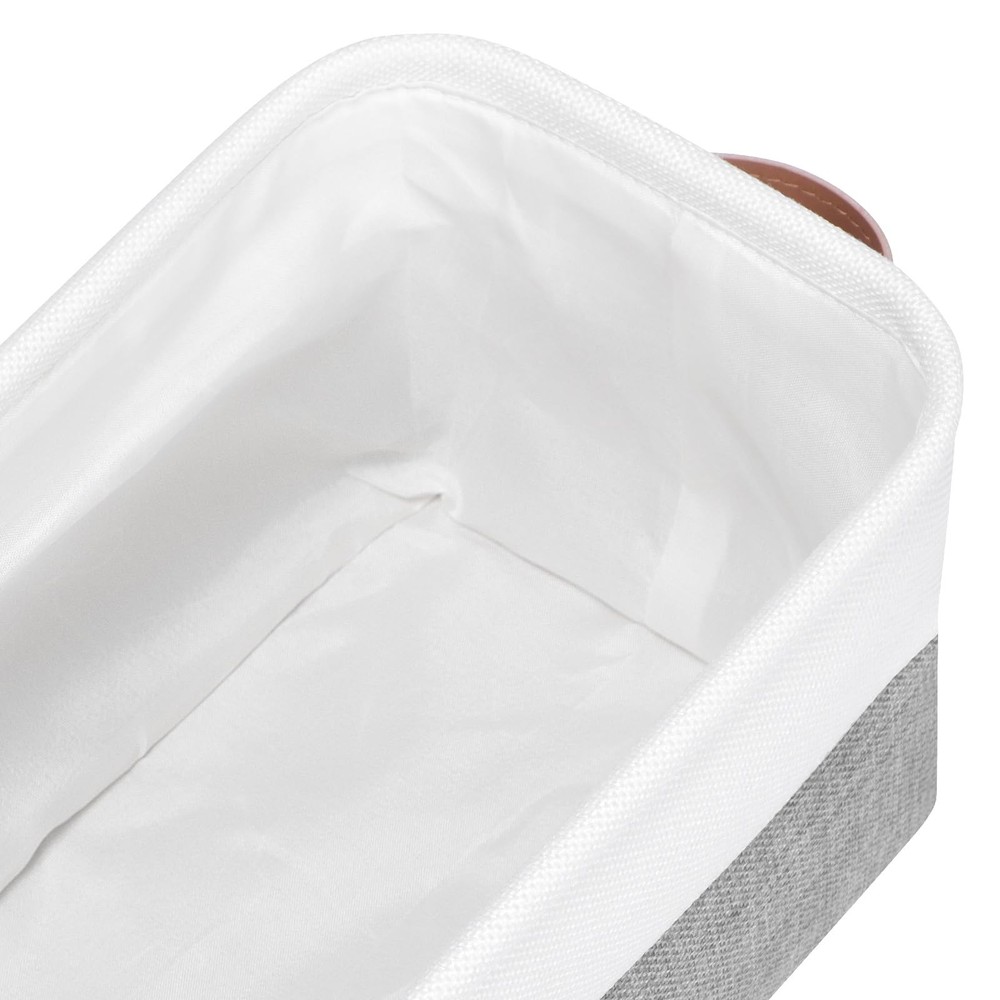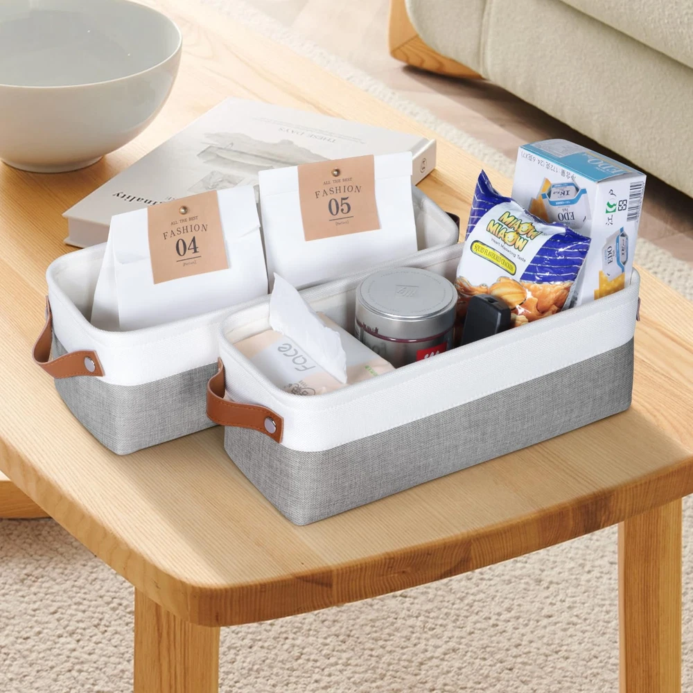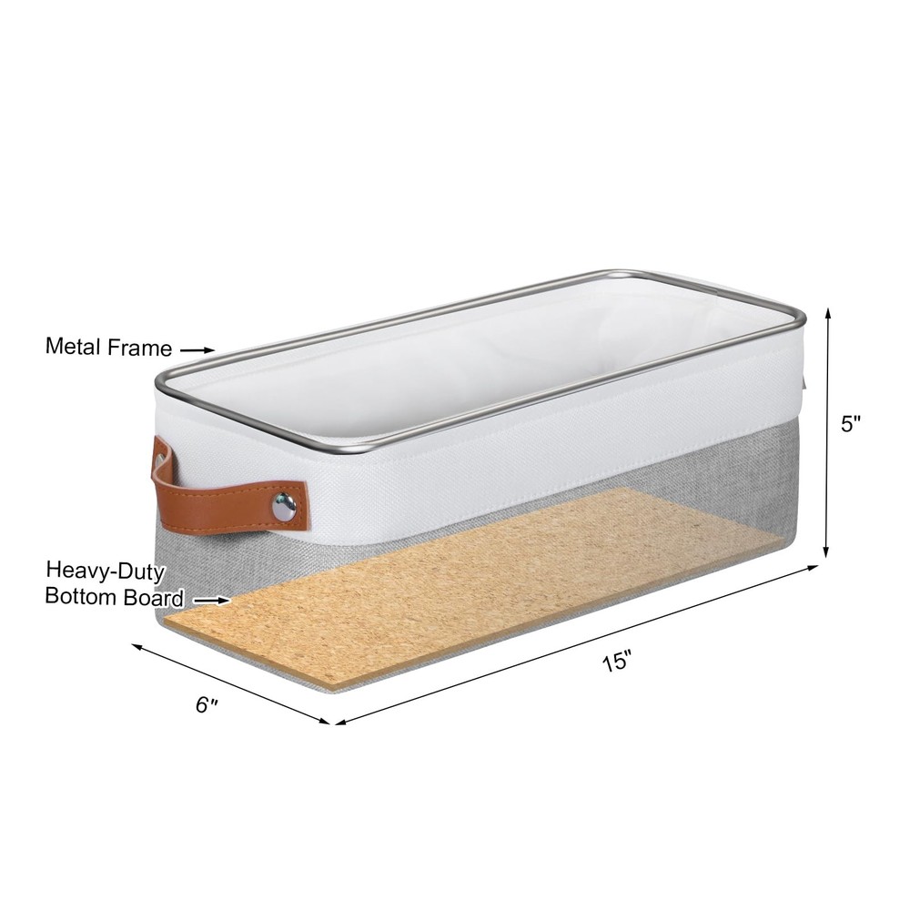 Mini storage bins cubby boxes fabric storage bins narrow baskets woven storage basket organization baskets wicker long basket bathroom bins for organizing medicine cabinet baskets fabric baskets small small baskets for storage small storage basket long short storage bins small storage bins for shelves、 diaper organizers extra small storage cubes small fabric storage bins medium shallow bin narrow baskets for shelves 【Small Baskets Size】: The size of the narrow storage bins is 15(L) x 6(W) x 5(H) inch/38x15x13cm, which provides a awesome solution for organizing and storage small items, such as socks, underwear, towels, wipes, toilet paper, diapers, keys, cards, makeup, and many other uses. 【High-Quality Materials】 :The narrow storage basket is made with sturdy extra thick linen fabric exterior and linen polyester interior lining. P.S.The basket is folded when shipping, it will turn back to its original shape quickly when you fill in some towels or clothes , and also iron is a good idea. 【Firm Structure】: Sturdy metal upper support frame and the thick base plate on the bottom make the long storage basket more durable. so they are not machine washable. Due to lined with a thin linen fabric, they are easy to clean, just need to wipe with a damp sponge or cloth. 【Multi-Purpose Bins】: Reinforced handles on both sides, our basket is easy to hang and move. Long narrow Collapsible Fabric Baskets are ideal for organizing your vanity countertop, pantry,close, bedroom etc. Can be used as organizer bins, decorative storage boxes. 【Customer Satisfaction Service】: Customer satisfaction is the motivation to obtain higher quality products. If you have any problems with our rectangle storage basket set, please contact us via ”contact seller” on Amazon, we will solve them for you within 24 hours.