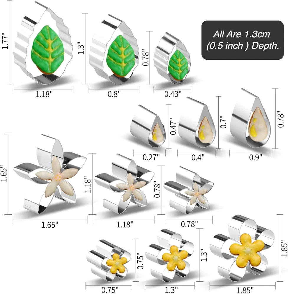 Small Flower & Leaf Shaped Cutters Set, Cookie Fondant Cutters, Cake Decorating