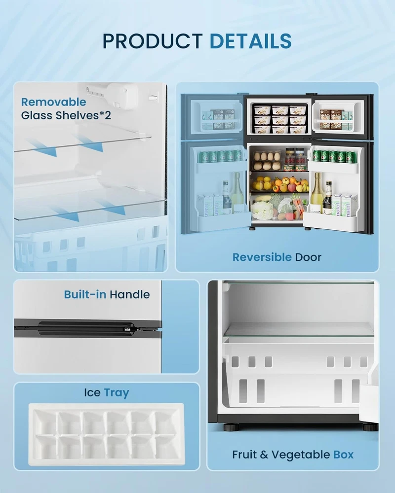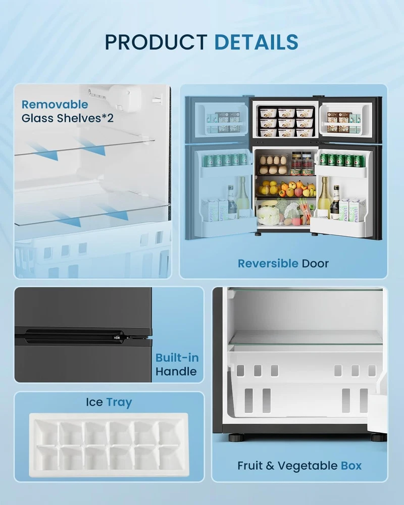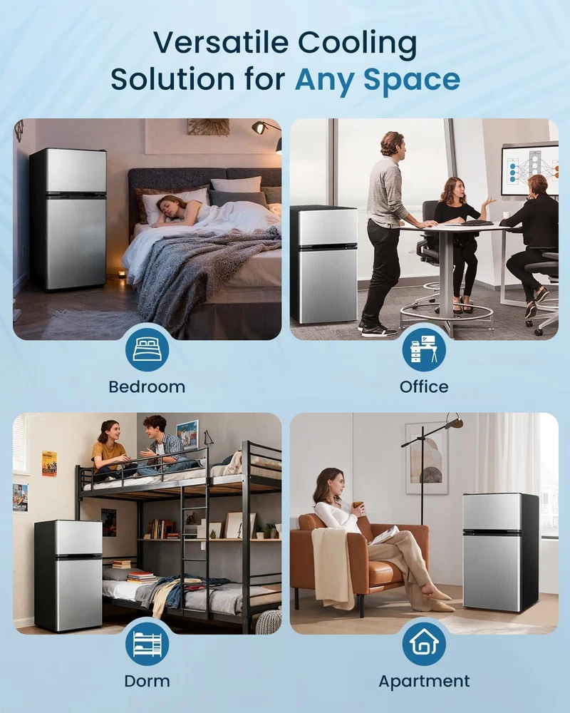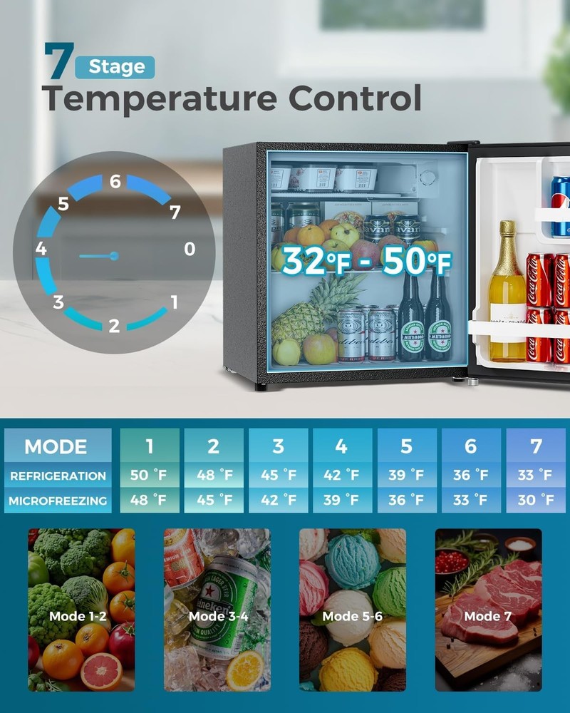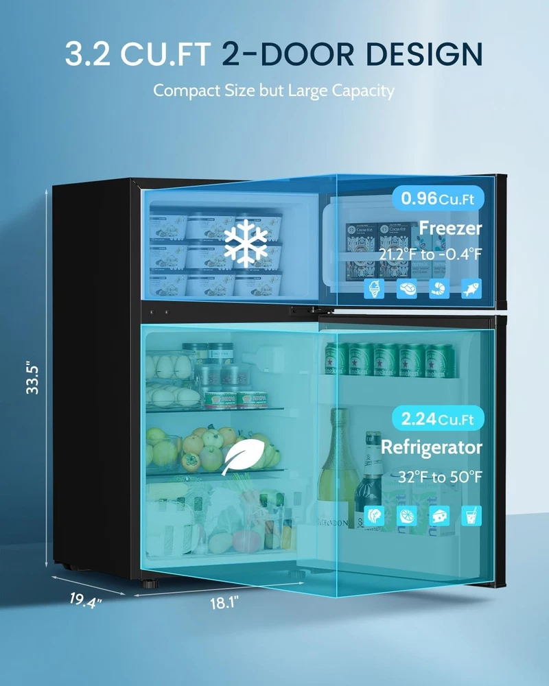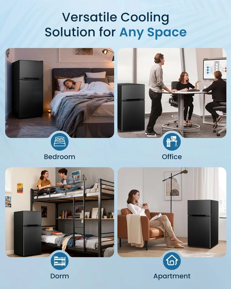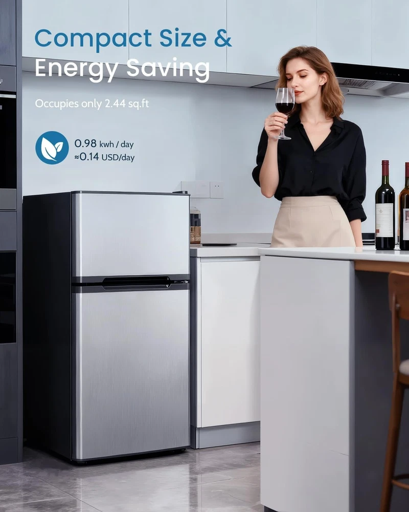 πŸ“Œ Condition: Open Box – PLEASE READ CAREFULLY πŸ”₯ FINAL CLEARANCE / BLOWOUT SALE – LAST UNITS πŸ”₯ This item is sold as OPEN BOX and part of a FINAL CLEARANCE SALE . ⚠️ COLOR IS SHIPPED AT RANDOM Color will be Black or Silver , selected randomly . No color choice. No exceptions. ⚠️ COSMETIC IMPERFECTIONS EXPECTED The unit may have visible scratches, scuffs, or minor dents due to handling, storage, or previous opening. πŸ‘‰ These are COSMETIC ONLY and DO NOT affect performance. The fridge has been tested and is fully functional . 🚫 IMPORTANT – PLEASE DO NOT PURCHASE IF: You expect a perfect, like-new appearance You are very picky about cosmetic condition You are a perfectionist regarding scratches or dents This item is NOT suitable for buyers concerned about appearance . ❗ FINAL SALE – NO RETURNS ACCEPTED Because this is a final clearance / blowout sale , NO returns, NO exchanges, and NO refunds under any circumstances. By purchasing this item, you fully understand and agree to all conditions stated above. Compact Size for Any Space - Our 1.7 cu. ft. small refrigerator measuring just 17.5"(W) x 16.9"(D) x 19.1"(H), offers a space-saving solution for any room. Its compact dimensions allow for flexible placement in bedrooms, offices, dorms, classrooms, home bars, apartments, and RVs. Easily store and access your favorite food, soda, beer, and beverages, maximizing convenience without compromising on space Mini Fridge with Freezer - This mini refrigerator features an efficient 1.5 cu. ft. refrigerator and a 0.2 cu. ft. freezer for all your storage needs. With specialized compartments for bottles, cans, and a removable shelf, it allows for customizable organization of fruits, vegetables, snacks, and ice cream, making it perfect for family life. Enjoy easy access to your favorite foods and beverages in this compact and versatile refrigerator Adjustable Temperature Control - This dorm fridge offers a wide temperature range (32℉-50℉) for tailored storage. With 7 precise cooling levels, you can effortlessly optimize the temperature for drinks, snacks, or fresh produce. The user-friendly thermostat knob makes it easy to find your perfect setting, ensuring your items stay fresh and ready to enjoy whenever you need them Low Noise & Energy-Efficient - Operating quietly at ≀38 dB, our bedroom mini fridge maintains a peaceful atmosphere for study, relaxation, or work environments. With energy costs as low as 0.55 kWh (about $0.09 daily), enjoy tranquil lifestyles in dorms, kitchens, game rooms, offices, and study areas – saving on bills while eliminating disruptive sounds Flexible Placement & Reversible Door - Our small refrigerator with freezer delivers maximum versatility through adjustable feet and a reversible door. Seamlessly fitting under desks or on countertops, this space-saving solution excels in tight spaces. This practicality makes it an excellent addition to your home or a thoughtful gift for friends and family looking for a reliable portable refrigerator Shipping & After-sales - Every mini fridge arrives quality tested with fast, secure transportation guaranteed. We provide 1-year accessory maintenance service to ensure your experience remains exceptional. For any product questions, contact us freely – we'll deliver satisfactory answers to keep your satisfaction at the fullest extent possible Product description