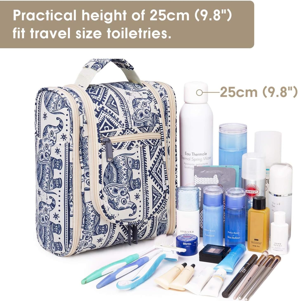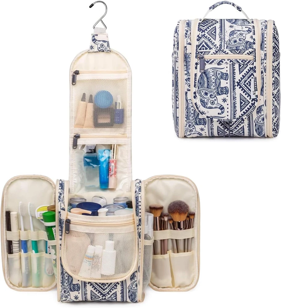 Small Hanging Toiletry Bag for Women – Travel Makeup Organizer, Medium, Elephant