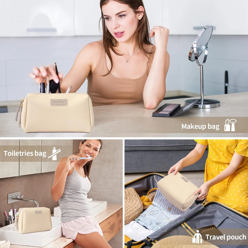 Store New Arrivals Add to Favorite View Feedback Contact Small Makeup Bag for Women Cosmetic Bag with Zipper Travel Makeup Bag of Soft PU Leather Cute Make up Pouch Description Item model number JH-MAG0278X-EU Color Beige Product Dimensions 7.5 x 2.8 x 5 inches Country of Origin China Item Weight 2.39 ounces Department Women Size Small DURABLE MATERIAL: The makeup bag is made of great PU leather fabrics, also durable and waterproof. The inner lining prevent internal products from getting wet of makeup bags. Dual-zipper design which is strong and sturdy makes the bag more durable than others. TWO SIZES DIMENSION AND COMPARTMENT: The large cosmetic bag is about 8.7"x3.9"x6.3", and the small makeup bag is about 7.5"x2.8"x5". Both cute make up bag have one main compartment with 2 small pockets and 1 side mesh pocket neatly organizes your makeup. PORTABLE: This cosmetic bag for woman can meet your various needs, suitable size is good fitness to your handbag or luggage take, doesn't take up too much space, lightweight and easy to carry. MULTIFUNTIONAL: The portable travel cosmetic bag can hold the makeup you need every day. Can also be as toiletries bag, storage bag, perfect for traveling, camping, party or other outdoor activities. PERFECT GIFT: Three brilliant colors for you to choose: beige, blue, black. The elegant and practical design of makeup bag often used as a perfect gift for girl and woman on Birthdays, Thanksgiving, Christmas and other holidays. Product Description Two Options are Available Large bag can easily store travel-size cosmetics and brushes. The smaller one can holds small-size cosmetics like concealer, lipsticks, foundation, blush and mascara. With smooth reliable zippers, no need to worry any ripping or break during trips. Waterproof fabric outside to protect items from spills, easy to wipe down. ABOUT US We offer the best prices around on high quality products. Our E-store includes media such as books, movies, music and games while offering electronics, toys, sporting apparel, clothing, tools, general home, garden items and more. SHIPPING We are always working hard to ensure your package arrives as soon as possible. Please understand that some factors like weather, high postal traffic, and the performance of shipping companies are outside of our control. We offer free shipping to the lower 48 states and ship within 2 business days of payment, usually sooner. We do not accept P.O. Boxes. Please provide a physical address. For shipping outside of the continental USA, we only use eBay's Global Shipping Program.The item is shipped to KY and then sent to the rest of the world. International customers are responsible for all duties and taxes. Continue to check out in order to calculate costs for shipping the item to your country. Messages regarding eBay's Global Shipping Program MUST be directed at eBay EXCLUSIVELY. RETURNS We offer a 30-Day Return Policy on items which you are not completely satisfied with. You have the option for a full-refund or an exchange of the item. No returns are available on items shipped outside of the USA. PAYMENT We accept PayPal. CONTACT US This page content is yet to come Please ad us to your favorite seller and visit again later Thank You CUSTOMER SATISFACTION We try our very best to make sure every customer is completely satisfied. If there's a problem, message us! We're happy to help. WE ACCEPT Copyright © 2021 AutoDS. | All Rights Reserved