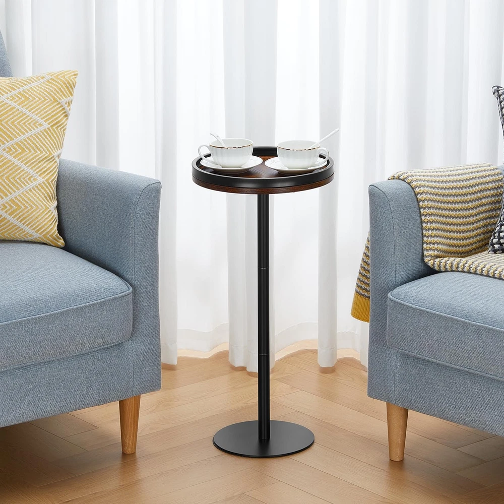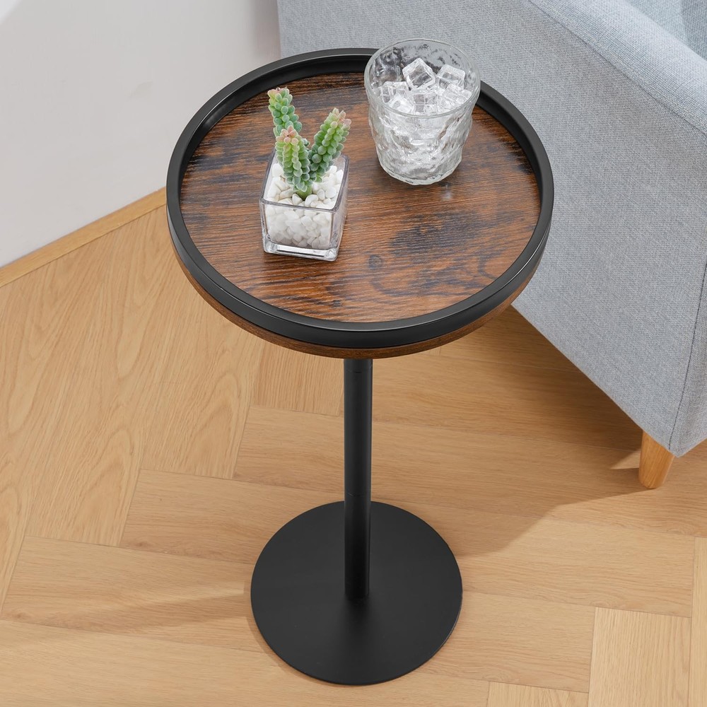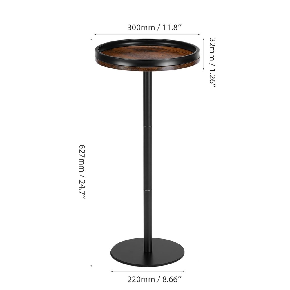 Packing List: 1*Small Drink Table Design Aesthetics: This drink table features a stylish design with clean lines and a sleek finish, which complements various interior styles, from modern to traditional, enhancing the overall decor of the space.adding a touch of elegance or personality to the space. Versatile Usage: This small side table serves multiple purposes.Facilitates social gatherings by offering a spot for guests to set down their beverages, making conversations more comfortable and accessible .Acting as a convenient spot for displaying decorative objects, books, or small plants, making it a multifunctional piece of furniture. Portability: Its lightweight design allows this small round table to be easily moved around, making it adaptable to different areas of the room or even different rooms altogether. Durability: Constructed from high-quality materials, such as wood or metal, this drink table is built to withstand daily use and resist spills or stains, ensuring long-lasting appeal. Height and Proportion: Size:11.8"D*24.7"H,This pedestal table is designed with an ideal height and a tabletop tray, making it easy to reach from a seated position without needing to stretch or lean.Besides, you have no need to worry about stuff dropping.