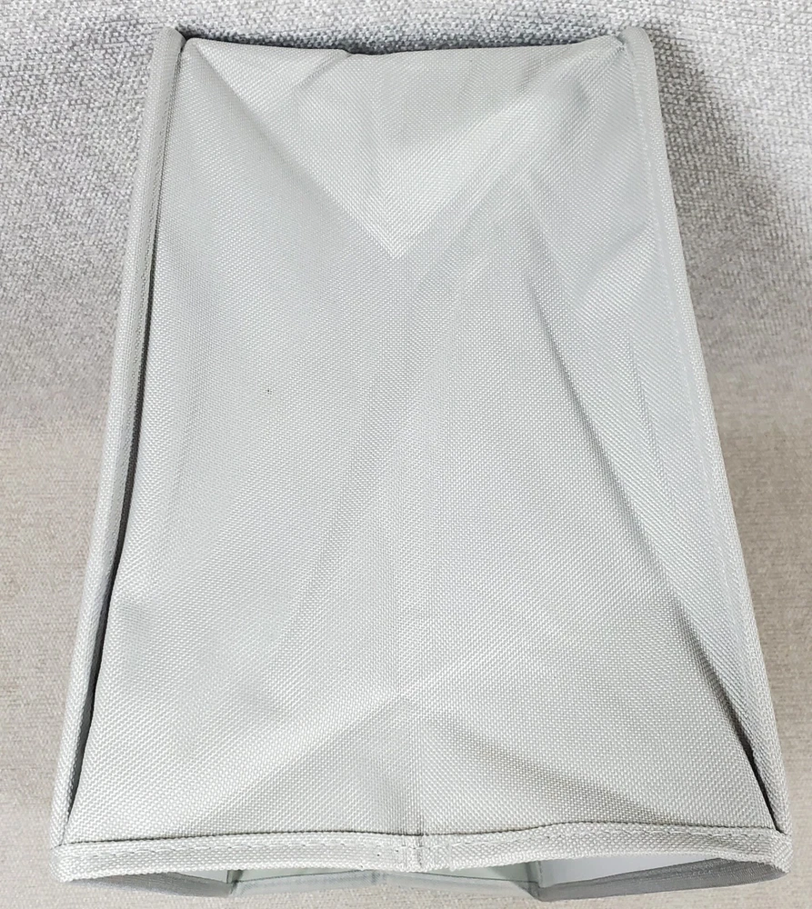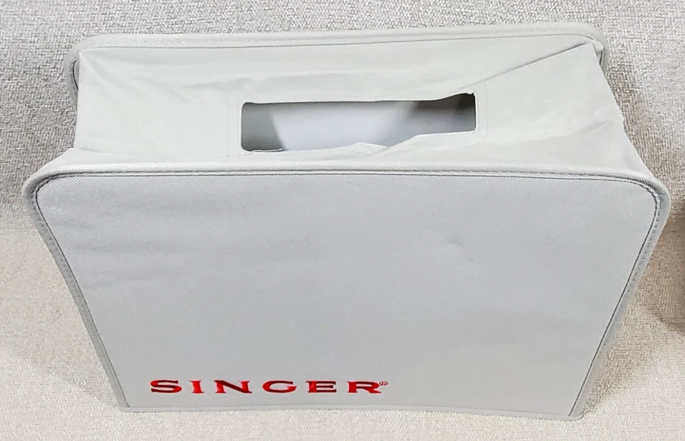 SINGER Small Sewing Machine Dust Cover 15" x 11" x 6" Semi-Stiff Excellent Unused Condition For your consideration is a small SINGER Sewing Machine Dust COVER. It is 15" wide x 11" high x approx. 6" deep. It is semi-rigid - the front and back are stiff; the top and sides "fold" to make it flat. Gray in color, slightly darker than it appears in the photos. I purchased this at an estate sale to see if it would fit one of my sewing machines, but it did not. The cover is pre-owned but appears unused. In excellent condition. Flaw: there is a tiny spot on the right side of the side panel, as shown in the last two photos. I don't know what it is from. I tried to remove it with mild detergent but it didn't come out. From a smoke-free home. Buyer pays exact calculated shipping within the U.S. (no handling fee). The package will weigh approx. 2 lbs. I am happy to combine shipping on multiple items purchased, if paid for with ONE payment. Thank you for looking!