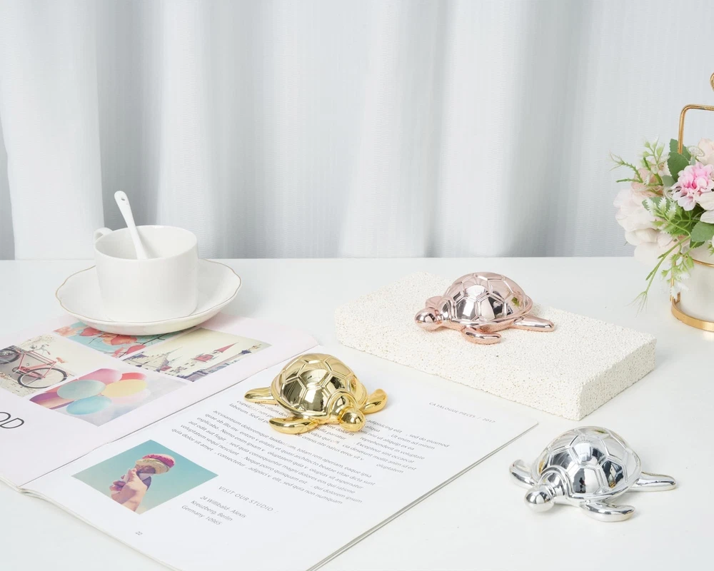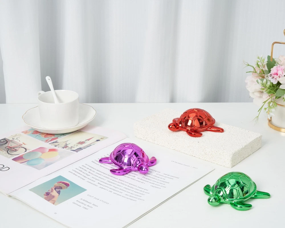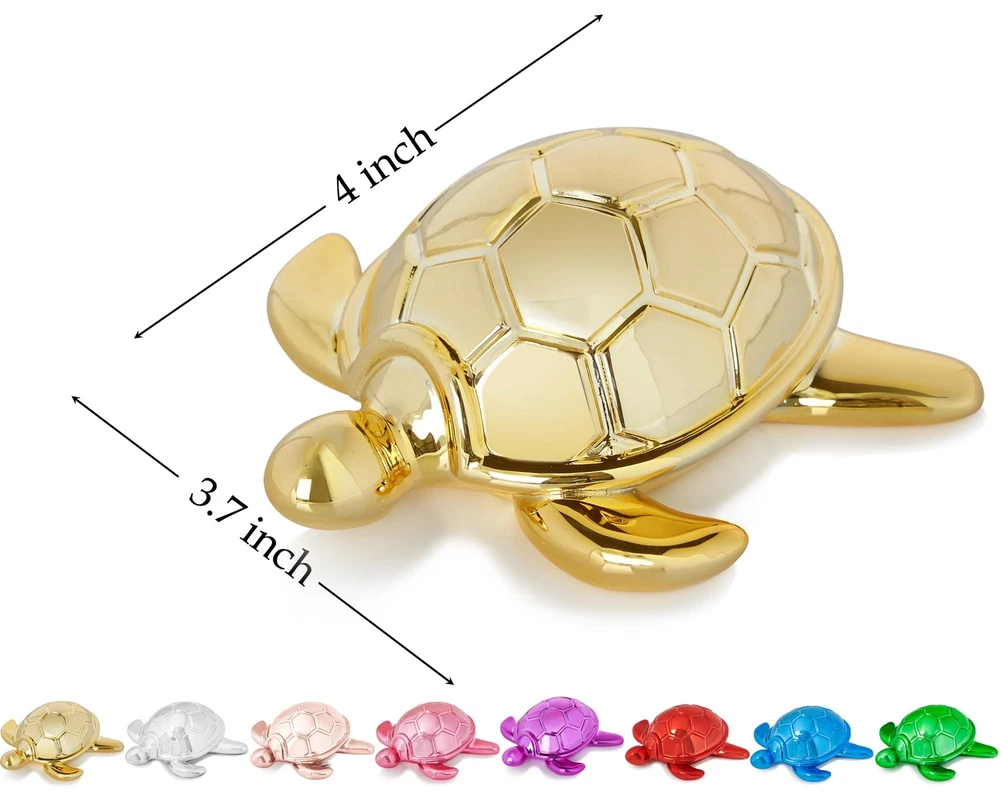 Small Sea Turtle Statue 4 inch Shiny Gold Accent Knick Knacks Paperweight for Bathroom Home Office Shelf Desk Table Decor, Cute Sea Turtle Gifts for Women Product Details Color: Gold Brand: Artconal MPN: Does not apply UPC: Does not apply EAN: Does not apply Color: Gold Brand: Artconal Theme: Small Turtle Statue Material: Resin Style: Art Deco Color: Gold Brand: Artconal Theme: Small Turtle Statue Material: Resin Style: Art Deco Occasion: Small Animal Statue, Sea turtle gifts decor, Small knick knacks for shelves, Sea turtle paperweight Product Dimensions: 4"D x 3.7"W x 1.5"H Recommended Uses For Product: Brighten up bathroom Mounting Type: Tabletop Cartoon Character: Sea turtle Finish Type: Painted Special Feature: Brighten up bathroom Year: 2024 Item Weight: 0.3 Pounds Product Care Instructions: Light Dusting Seasons: All Seasons Item Weight: 4.8 ounces Manufacturer: Artconal Country of Origin: China Finish types: Painted Assembly required: No Batteries required: No Brighten up bathroom: This charming turtle figurine is a stunning addition to your decor that radiates elegance and whimsy; At 4x3.7x1.5 inches, it's the perfect size to brighten up your bathroom, office, or living room Sturdy and Stylish Paperweight: Made from solid resin, this turtle isn't just a pretty face; Its substantial weight makes it a fun and functional paperweight, adding a playful touch to your desk Vibrant Colors for Every Style: Available in 8 eye-catching colors, including gold, silver, rose gold, pink, red, blue, green, and hot pink; This delightful turtle lets you express your unique style and complements any decoration Bring Joy and Whimsy to Your Home: This adorable turtle figurine is more than just a decoration; Its a joyful piece that adds a touch of humor and charm to your space, perfect for coffee table, shelf, or desktop Craftsmanship That Shines: With a brilliant electroplated finish, this turtle figurine shines like a star; Its smooth, rounded design and impeccable craftsmanship ensure it is a statement piece that draws attention and admiration