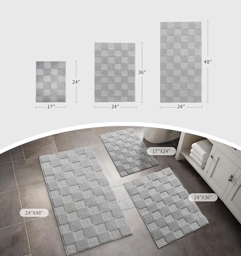 Bought this for my small bathroom, and it fits perfectly! The grey waffle design looks sleek and modern. Super soft underfoot while still being thin enough to fit under the door. Washed it once already—no shedding, and the non-slip backing works great. Dries fast, too! Definitely worth it for the price.