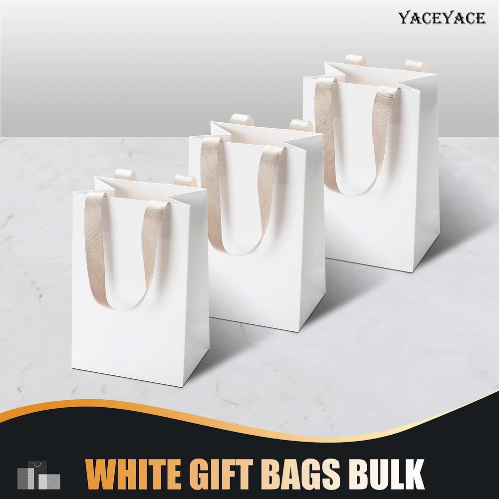 These little white gift bags are perfect for any occasion! The size is just right for small gifts, party favors, or retail packaging. The ribbon handles add a nice touch, and the quality is great for the price. I love that they come in bulk—so convenient for events or last-minute wrapping. Sturdy enough to hold small items without tearing. Definitely recommend for anyone needing cute, simple gift bags in bulk!