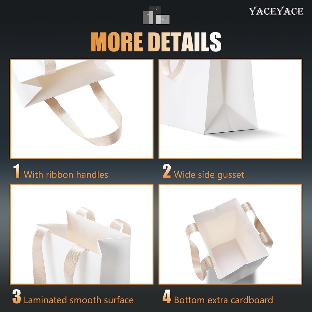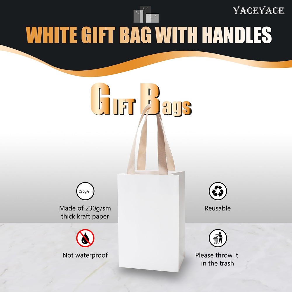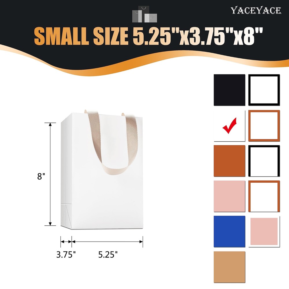 Exclusive Offers - White Gift Bags Small Size, 40Pcs 5.25"x3.75"x8" White Paper Gift Bags with Ribbon Handles Bulk,Party Bags,Retail Bags Your Shopping Adventure Starts Now! Welcome to our store! We promise you'll be satisfied. White Gift Bags Small Size, 40Pcs 5.25"x3.75"x8" White Paper Gift Bags with Ribbon Handles Bulk,Party Bags,Retail Bags Item Details is a professional box and bags supplier .As we understanding to be a top brand is a long way which must be depend on customer supports. It's always remind us that devote to providing high quality product for all clients. Please be confident with our quality and really good value for money. Feature 1.Large size and more items can be loaded 2.Sturdy and durable. It's made of white cardboard paper and more thicker than the normal paper bags. 3.The ribbon handle more comfortable and elegance which is different with flimsy paper handle. 4.Multi application for use in business, Baby showers,Weddings,Various Holidays and Parties. Packing including 40 x paper bags. Product Features 〖Quantity and Dimensions〗Including 40Pcs 5.25"L x3.75"W x8"H thick white gift bags.The bags are small size for smaller items such as jewelry, aromatherapy products, make up, etc. Kindly to remind that pls reading bag's size as picture 2nd show. Make sure it match with your requirements. 〖Quality and Materials〗Made of 230 gsm kraft paper. They were thick rather than the without tear or break easily. Durable and stronger than normal paper bags, solid construction, not flimsy, stood up easily when opened. 〖Sturdy Ribbon Handles〗Come with the nice strength of stable cloth ribbon handles. Not need to assemble. It's sturdy enough to carry more weight. Not only holding heavy weight but comfortable touching and classy look. Make the bags look very upscale with a higher quality ribbon handle. 〖Exquisite Texture〗The surface was coverd with thin film through embossing technology to forming a linen texture. Well-made,attractive and professional packaging. Recommended to used them for wedding gift bags and personalized them by stickers or decorated. 〖Multi-Use〗Suitable for any occasion! Wedding,Award Dinner,Baby Shower,Birthday,Party,Aanniversary, Graduation, Festival,etc. Great packaging ideal for bridesmaids bags,gift wrap bags, small business bags, party bags, retail bags, boutique bags and more. Payment Information ⦿ Secure payments via eBay. We accept PayPal and major credit cards. ⦿ Immediate payment required after purchase. Shipping Details ⦿ We ship to the address provided on eBay. Please verify your address before purchasing. ⦿ Orders will be processed within 1-2 business days and shipped promptly. ⦿ Delivery in 3-7 business days via UPS, FedEx, USPS. Return Policy ⦿ 30-day return policy for full refunds. ⦿ Please ensure items are returned in their original packaging and condition. Contact Us For any inquiries or issues regarding your purchase, please contact us through the eBay messaging system. We will respond within 24 hours.