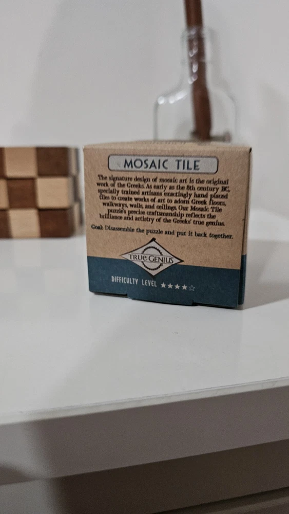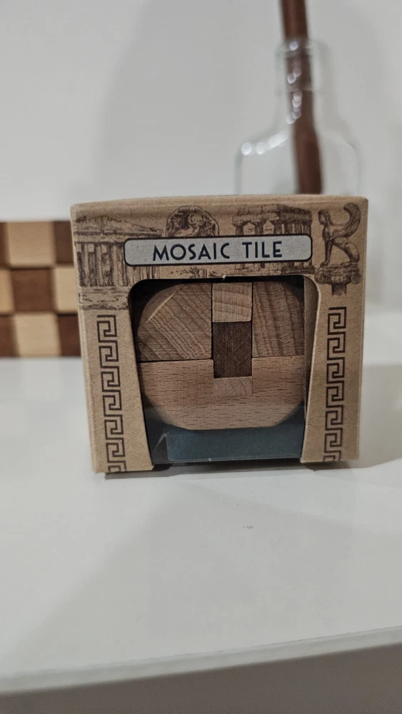 3 wooden brain teaser 3d puzzles. Mosaic cube is disassembled.