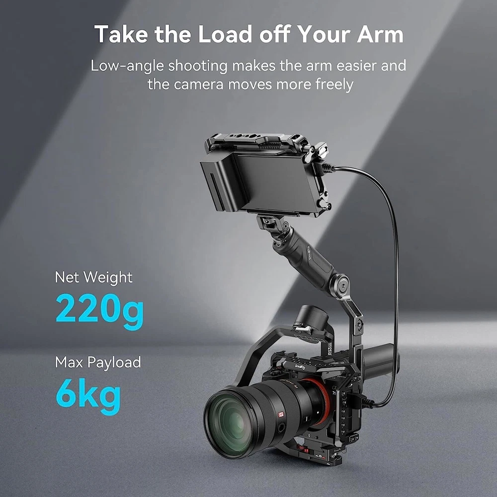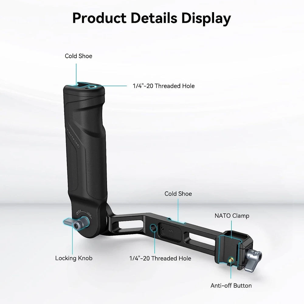 1. Designed for DJI RS 3 Mini, no shift of center of gravity; 2. Compact, weighs only 220g, easy to carry around; 3. Multiple mounting points: 1/4 threaded holes and cold shoe mounts; 4. Angle adjustable: tilts 0-180 degrees via a ratchet knob, easily folded for storage. SmallRig Plastic Lightweight Adjustable Handle Sling Handgrip for DJI RS 3 mini About this item 【For DJI RS 3 Mini】 SmallRig Sling Handle 4197 is specially designed for DJI RS 3 mini gimbal. This briefcase handle is designed to reduce arm fatigue during low angle shooting and mounted it onto RS 3 mini would not shift the center gravity. 【180 Degree Adjustment】 Offering 180° adjustment via a built-in rosette joint, this ergonomic handgrip gives you the flexibility you need to shoot from a variety of angles, and it helps take the load off your arm. This gimbal handle for DJI Ronin RS 3 mini has a pretty good and sturdy grip. 【Portable and Compact】 The compact handgrip weighs only 220g but can bear as much as 6kg. And low-angle shooting makes the arm easier and the camera moves more freely. It's really compatible gimbal looking for extra stability or to lower it down to underslung / briefcase mode. 【Quick Release Clamp】 The grip mounts onto the gimbal using a NATO clamp. Also, the quick release NATO rail features an anti-removal stud to ensure a safe and quick operation. The delicate and compact handgrip works perfectly with the gimbal which is a comfortable accessories for DJI RS 3 mini. 【Multiple Mounting Points】 Multiple 1/4"-20 threads are built-in on the handgrip which allows for mounting Magic Arm. With two cold shoe mounts on top and side of the handgrip, it can be mounted with Monitor Mount 2905B, wireless receiver, video transmission and other equipment. SmallRig Sling Handle for DJI RS 3 Mini 4197 is designed to reduce arm fatigue during low-angle shooting and offer plentiful accessory mounting options. Mounting it onto RS 3 Mini would not shift the center gravity. The compact handgrip weighs only 198g but can bear as much as 6kg. It quickly locks the gimbal via a NATO clamp, which features an anti-drop button to ensure safety. Built-in 1/4”-20 threads and two cold shoe mounts on top and side support Monitor Mount 2905B, sound receiver, image transmission system. The rig can also tilt 180° via a ratchet knob for easy storage. Overall, the delicate and compact handgrip works perfectly with the gimbal. Designer: Yetta White Note: Load capacity: 6kg Compatibility: DJI RS 3 Mini In the Box: 1 x Sling Handle Specifications Product Dimensions: 183.5 x 56.7 x 40mm Package Dimensions: 220 x 113.5 x 41mm Product Weight: 198±5g Package Weight: 252 ±5g Material(s): Aluminum Alloy, Plastic