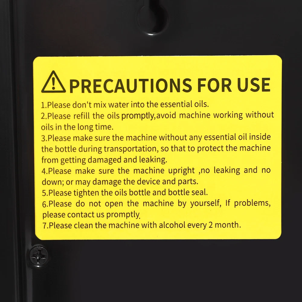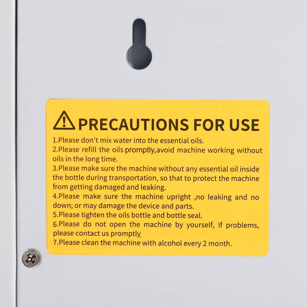 Specifications Color: White+Black Model: GAS-300HF Style: Modern Shape: Rectangular Material: Metal Plate, Acrylic Installation Type: Tabletop, Wall Mount, Connect HVAC Process: Painting Screen Type: LED Plug Type: US Standard Adapter Input: 100-240V, 50/60Hz, 0.5A Adapter Output: 12V, 1000mA Voltage: DC12V Power: 8W Noise: <42dB Essential Oil Consumption: 1ml/0.034oz/h Bottle Capacity: 200ml/6.76oz Scent Spraying Time: 5-300s Scent Spraying Interval: 5-300s Suitable Tube Diameter: 6mm/0.24in Coverage: 300-500m³/10594.4-17657.3ft³ Product Size: 19*9*22cm/7.48*3.54*8.66in Packaging Size: 35*28*10.3cm/13.78*11*4in Gross Weight: 3kg/6.61lbs Net Weight: 2.5kg/5.51lbs Package Included 1* Smart Air Diffuser 1* Coupling 1* Soft Tube 2* Keys 1* Adapter .. Smart Air Diffuser, LED Smart Scent Air Machine, Scent Diffuser for Offices Home Description This smart air diffuser comes with WIFI connectivity and multiple settings to turn the spray on and off at regular intervals, filling the space with a fragrant aroma and relieving the fatigue and stress you have accumulated throughout the day. It comes with a 6.76oz oil compartment, which can be used for a long time by filling it once, fully utilizing every drip of essential oil to enhance your life quality. Key Features Sturdy and Durable: The acrylic, metal plate, and painting process give the product a stylish appearance, high hardness, and corrosion resistance, making it hard to deform and keeping it practical for long-term use. Efficient Fragrance Diffusing: The product comes with a porous atomizing core, which atomizes particles more finely and allows the aroma to spread more evenly over a wide range (10594.4-17657.3ft³). Smart Control: The product can be set with a working time of one week and one day to meet your usage needs. By scanning the QR code on the manual, you can easily connect to WIFI and control the product remotely, which makes your life more convenient. Low Noise: The product runs at less than 42dB(A)(equivalent to the volume of whispers), providing you with a quiet sleeping, working, and living environment. Long Endurance: The product consumes only 0.034oz of essential oils per hour. The 6.76oz oil compartment allows the product to be used for a long time without having to add essential oils frequently. Thoughtful Design: The separate essential oil bottle makes it easy to change, clean, and refill scented essential oils(not included). The sturdy lock can prevent pets or children from opening it accidentally. In addition, the product comes with an internal filter head that can filter solid substances other than essential oils. Oil-lacking Warning: After setting the relevant data, when there is a lack of essential oil in the product, the light bar on the machine will turn red to remind the oil level is too low. Simple Installation: With the English manual and complete accessories, you can easily install it on the wall with screws or just place it on the table. Buy with Confidence: We stand behind all our guests and look forward to assisting you with your purchase. It is our pleasure to answer your confusion and questions. The end of the story between us is not "we sell and you buy". Details Quick Coupling: You can use the quick coupling to connect the 6mm diameter tube for more applications such as HVAC. LED Screen: It displays the time, week, timer, work frequency, work status, days essential oils can be used, and WIFI connection mark, making it easy for you to set it according to your usage needs. Stable Feet: They make the product stand stably when placed on a tabletop for smooth running. Heat Dissipation Holes: They timely dissipate heat to ensure stable operation of the product and prolong its service life. Application The product can cover an area of up to 10594.4-17657.3ft³ and is suitable for offices, hotel lobbies, yoga, spas, 4S stores, villas, homes, gyms, shopping malls, clubs, commercial buildings, and more. How to Install: Open the side cover of the product. Add essential oils to the container. Put the side cover back in place. Connect the power cord and then you can adjust it on your cell phone. Specifications Color: White+Black Model: GAS-300HF Style: Modern Shape: Rectangular Material: Metal Plate, Acrylic Installation Type: Tabletop, Wall Mount, Connect HVAC Process: Painting Screen Type: LED Plug Type: US Standard Adapter Input: 100-240V, 50/60Hz, 0.5A Adapter Output: 12V, 1000mA Voltage: DC12V Power: 8W Noise: <42dB Essential Oil Consumption: 1ml/0.034oz/h Bottle Capacity: 200ml/6.76oz Scent Spraying Time: 5-300s Scent Spraying Interval: 5-300s Suitable Tube Diameter: 6mm/0.24in Coverage: 300-500m³/10594.4-17657.3ft³ Product Size: 19*9*22cm/7.48*3.54*8.66in Packaging Size: 35*28*10.3cm/13.78*11*4in Gross Weight: 3kg/6.61lbs Net Weight: 2.5kg/5.51lbs Package Included 1* Smart Air Diffuser 1* Coupling 1* Soft Tube 2* Keys 1* Adapter 1* English User Manual 1* English Application Operation Manual Other Needed Accessories Notes Please check the size carefully before ordering. Please read the English manual and product label carefully before using the product. Essential oils are not included. Please do not mix essential oils with water. It is recommended to set the working time to 60-90 seconds and stop 120-180 seconds. You can adjust it according to the size of the room and the preference of the flavor intensity. Once the diffuser starts working, you need to wait a while before you can smell the scent. Please regularly clean it every 2-3 months. Please allow the slight color difference caused by the shooting light and 1-3cm error due to manual measurement, and make sure you do not mind before you order. Payment Delivery details Terms of sales About us Contact us Payment We accept ebay payment 。 Fees such as import duties, taxes are not included in the item price or shipping costs. These charges are the buyer's responsibility. Delivery details Shipping: 2-9 working days to: USA Terms of sales We maintain high st