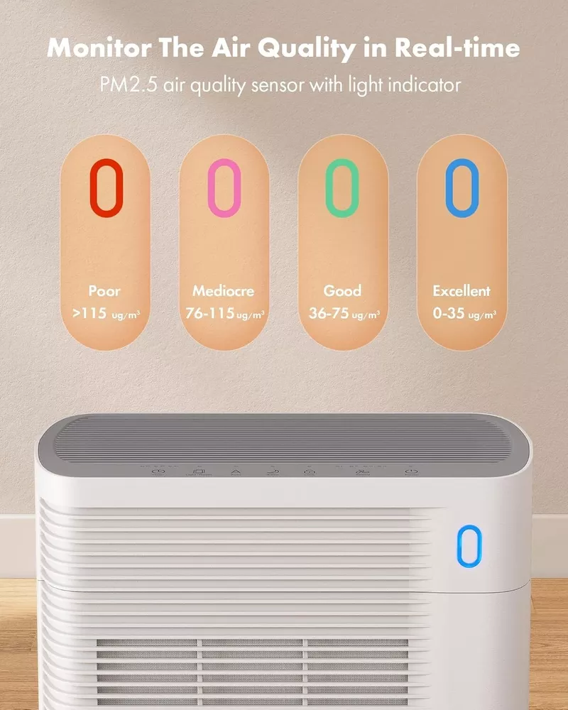 Smart Air Purifier for Bedrooms - Double-Sided Inlet & PM2.5 Sensor Technology