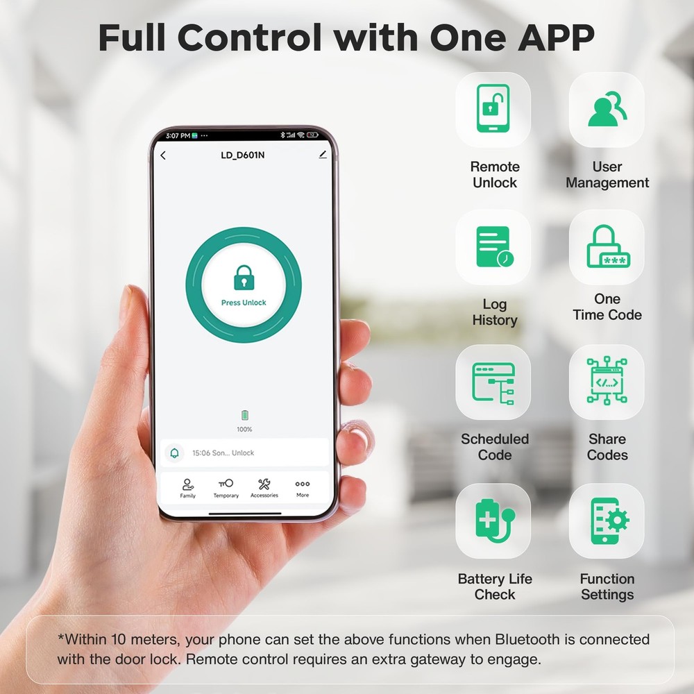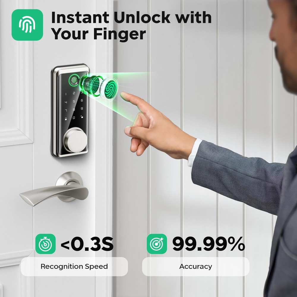 Sophia Keyless Entry Door Lock, Smart Auto Locks for Front Door & Key Fobs & Remote Control, Keypad Deadbolt Digital, Fingerprint Door Lock with Code, Cerraduras Inteligentes, IP68, Satin Nickel Description Features: Effortless Keyless EntryThe keyless entry door lock has multiple unlocking methods to get into your home, including fingerprint, password, IC card, NFC devices, Smart APP, and mechanical lock to ensure convenient entry. You will not be locked out or need to spend time searching pockets and bags. Smart ManagementYou can add & delete users, generate passwords for others, and view the unlocking records; Multiple smart devices can be controlled by one APP. A Tuya GATEWAY (SOLD SEPERATELY) IS REQUIRED FOR REMOTE CONTROL and checking real-time unlocking records Enhanced SecurityThe waterproof IP68 smart door lock has undergone rigorous extreme temperature testing and can withstand a usage environment of -4 to 122 F. The fingerprint door lock uses customized high-tech chips with accurate biometric recognition technology (please cover the entire fingerprint as much as possible when registering). Equipped with a curved screen with anti-peeping keypad, the keypad deadbolt has auto-locking, one-touch locking, and anti-theft alarm functions. Responsive & Accurate RecognitionThe front door lock with code uses customized high-tech chips, which is responsive to password and fingerprint verification. Built-in mature biometric technology - fingerprint recognition, the electronic door lock can accurately identify the user at the moment of pressing down the finger (less than 0.3S) after every edge of the fingerprint is fully recorded. Full Control with One APPUsing Tuya APP or Smart Life APP not only allows remote unlocking for visitors, or generate one-time, time sensitive, or permanent passwords sharing them with your visitors, but also enables remote viewing records of door lock unlocking and anti-theft alarms anytime & anywhere. Additionally, some functions of the dead bolt locks for exterior doors can be set by the Apps (such as adjusting the Extend Unlock(for auto-lock) and volume of automatic door locking). Fit to All DoorsThe smart deadbolt lock is compatible with both left and right handed doors. Automatically identify the unlocking direction after installation. Ideal for houses, Airbnb, apartments, offices, and hotels. Quick InstallationNo extra drilling needed. Just one Phillips screwdriver you can finish the installation the combination door lock within a few minutes. Please refer to the user manual and the QR codes for detailed installation instructions. Includes all accessories(cylinder*1, mechanical keys*2, IC card*2, screw kit*1, user manual*1, installation template*1). Cost-effective Solution for LandlordsEconomical and efficient solution for Airbnb hosts, apartment managers and house owners to seamlessly manage and monitor large number of digital door locks through a single application. No need to spend time handing over mechanical keys or key cards before visitors enter and exit the house. You'll Get 2-year Support and Lifetime Customer Service Product Details: Brand: SOPHIA Special Feature: Remote Control(Tuya WiFi Gateway Hub Sold Seperately), Auto-lock, NFC/Key FOB, Normally-open Mode, Remote Unlock, One-time Code, Scheduled Code, Anti-peeping, Anti-theft Alarm, Emergency Power Supply, One-Touch Lock, Scratch-Resistant, Back-Lit Keypad See more Lock Type: Biometric, Deadbolt, Combination Lock, Keypad Item dimensions L x W x H: 9.06 x 7 x 3.46 inches Material: Zinc Brand: SOPHIA Special Feature: Remote Control(Tuya WiFi Gateway Hub Sold Seperately), Auto-lock, NFC/Key FOB, Normally-open Mode, Remote Unlock, One-time Code, Scheduled Code, Anti-peeping, Anti-theft Alarm, Emergency Power Supply, One-Touch Lock, Scratch-Resistant, Back-Lit Keypad Lock Type: Biometric, Deadbolt, Combination Lock, Keypad Item dimensions L x W x H: 9.06 x 7 x 3.46 inches Material: Zinc Recommended Uses For Product: Office, Hotel/Airbnb, Apartment, Front Door (Tuya Smart Hub Sold Seperately) Style: Keyless Color: Satin Nickel Number of Pieces: 1 Finish Type: Nickel Included Components: smart lock*1, cylinder*1, mechanical keys*2, IC card*2, screw kit*1, user manual*1, installation template*1 Controller Type: Tuya Bluetooth Mesh Shape: Rectangular Control Method: App, Remote, Touch, Voice Connectivity Protocol: Tuya WiFi Gateway Hub Sold Seperately, 2.4GHZ Bluetooth Mesh Model Name: DK600-SN Manufacturer: SOPHIA Part Number: DK600-SN Item Weight: 2.66 pounds Product Dimensions: 9.06 x 7 x 3.46 inches Country of Origin: China Item model number: DK600-SN Finish: Nickel Special Features: Remote Control(Tuya WiFi Gateway Hub Sold Seperately), Auto-lock, NFC/Key FOB, Normally-open Mode, Remote Unlock, One-time Code, Scheduled Code, Anti-peeping, Anti-theft Alarm, Emergency Power Supply, One-Touch Lock, Scratch-Resistant, Back-Lit Keypad Batteries Included?: No Batteries Required?: Yes Date First Available: July 29, 2024 Handling We will ship all orders within 3 business days of payment. Delivery We do not ship outside of the Continental US. Feedback We take our reputation seriously, we buy and sell online, so we understand the value of trust. If you are unsatisfied with your order, please contact us and we will work with you to resolve it to your satisfaction.
