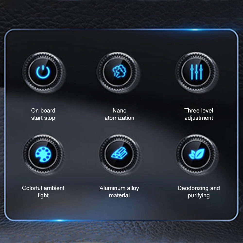 Model: Smart Car Air Freshener Aroma Diffuser EAN: Does not apply Battery Capacity: 900mAh/3.33Wh Country/Region of Manufacture: China Color: Black Features: Diffuser, 3 Modes Adjustable, Rechargeable, Ambient Light, Auto On/Off Type: Car Air Freshener Colour: Black UPC: Does not apply Number of Settings: 3 gtin13: Does not apply Department: Adults Power Source: Built-in Battery Material: Aluminium Alloy+PC Room: Car Operating temperature: 0°C-60°C Brand: Unbranded