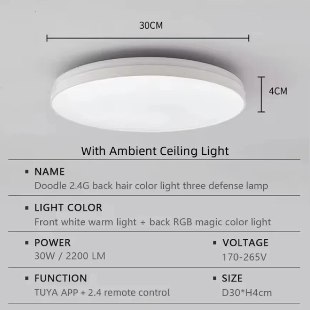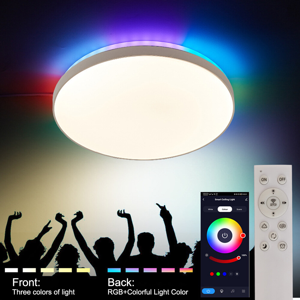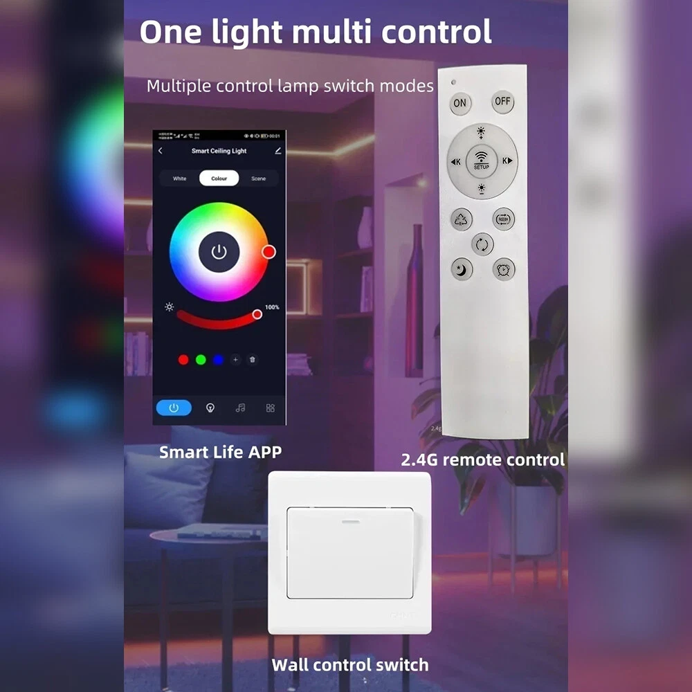 Features: 1.Remote control distance: 10-15 metres. Warm white light on the front + RGB phantom light on the back 2.It can adjust the brightness, the colour temperature is 2700-6500k, you can freely adjust the warm white or cool white. The RGB colour light on the back can be mixed with many colours. 3. The light is soft and not harsh. The colour scheme is suitable for all kinds of festivals, and different colours can also regulate the mood. Intelligent ceiling light, you can easily create different dynamic scenes. 4.The colour of the backlight will change according to the rhythm of the music. Bring you a brand new experience. Perfect for special occasions. 5. Easy to install, safe to use - simple and diverse appearance. Specifications: Product size: 30cm*30cm*4cm Net weight 500g Function:APP+2.4 remote control Lighting:Warm white light on the front and RGB colourful light on the back. Voltage:Single voltage 170-265V Wide voltage:100-245V Product power: 36w Package List: Ceiling light * 1 + remote control * 1 + manual * 1 + screw package * 1 Notes 1. Please allow a little error due to manual measurement. Please make sure you don't mind before bidding. 2. Please understand that the colour may be different due to the difference of monitor. On Dec 24, 2024 at 00:37:11 PST, seller added the following information:
